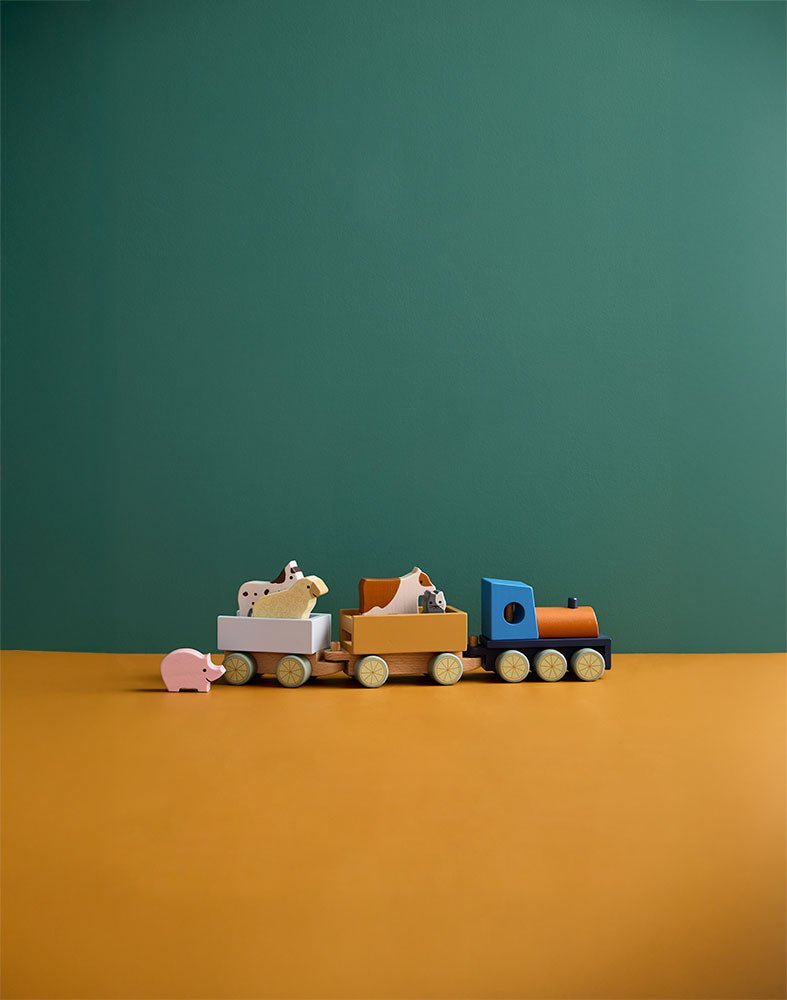 Un train en bois durable, sûr et imaginatif qui invite les jeunes enfants à explorer, pousser, empiler et inventer des histoires.