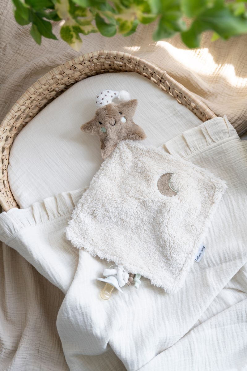 La couverture câline de la collection Heaven est le jouet parfait pour ton bébé - à la fois doux, ludique et pratique. Avec ses détails pleins d'amour, elle offre un sentiment de sécurité, éveille la curiosité et stimule le sens du toucher.