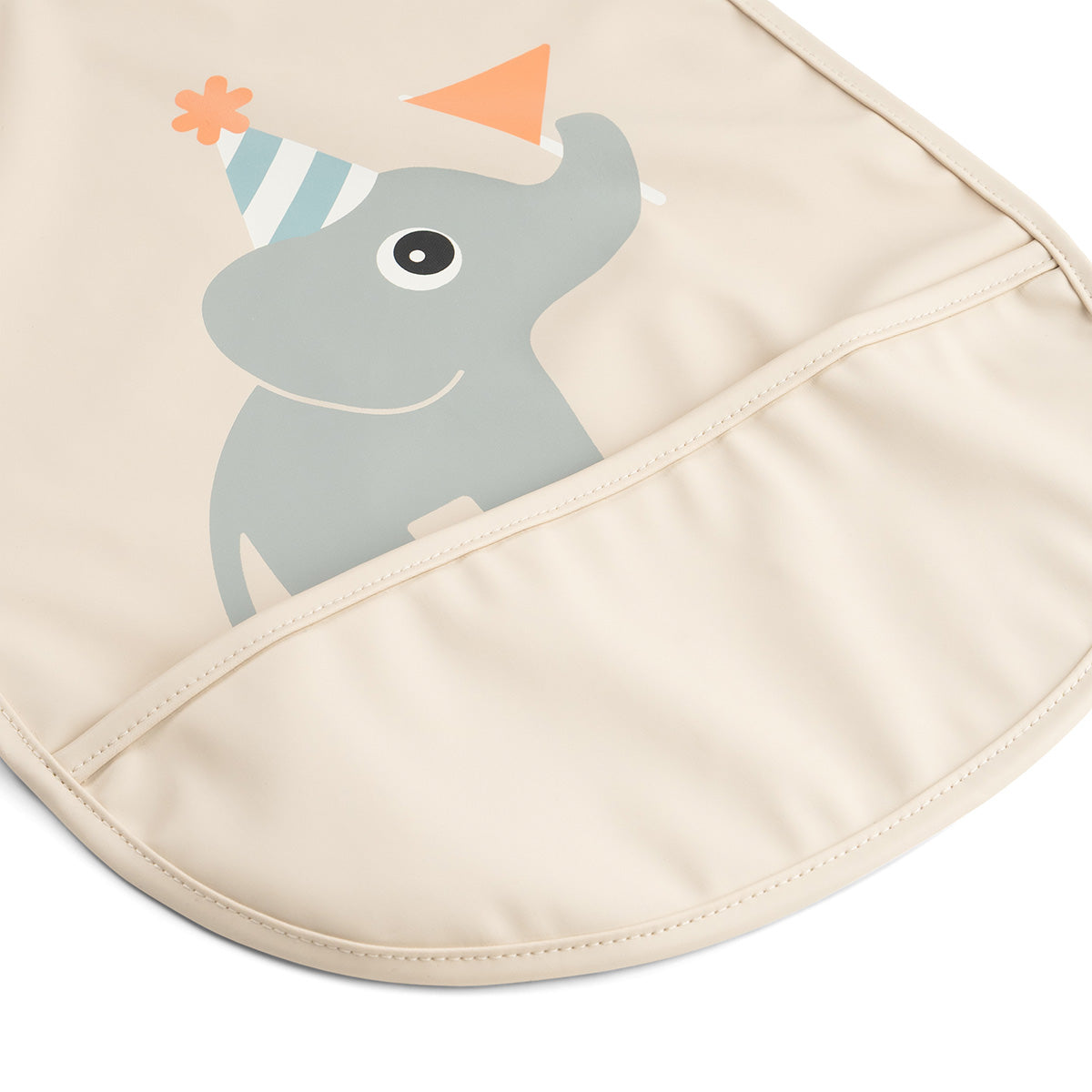 Protège les vêtements de ton petit pendant qu'il mange avec ce bavoir dérapant de la couleur Celebration Sand. Fabriqué en 100 % polyester avec revêtement PU, il est déperlant et facile à nettoyer.