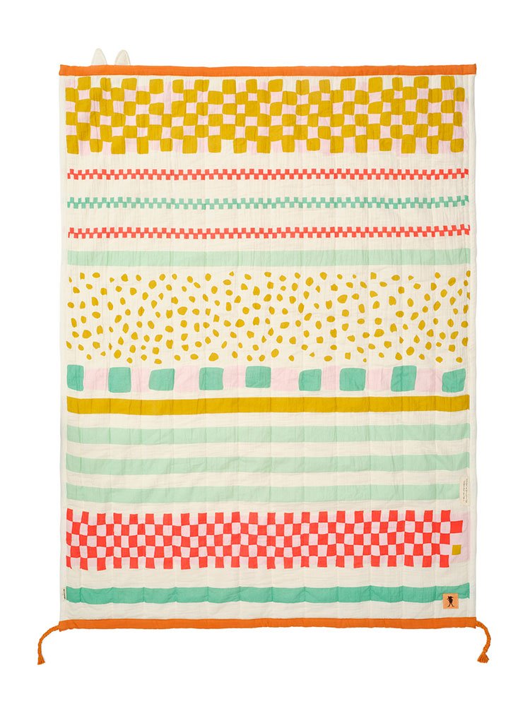Cette douce couverture Pippi Longstocking dégage ce même caractère enjoué. Fabriquée à partir de couches de mousseline de coton biologique - un tissu aéré et respirant - et remplie de polyester recyclé, la couverture apporte juste assez de chaleur pour les siestes, l'heure du coucher ou un moment de détente sur le canapé.