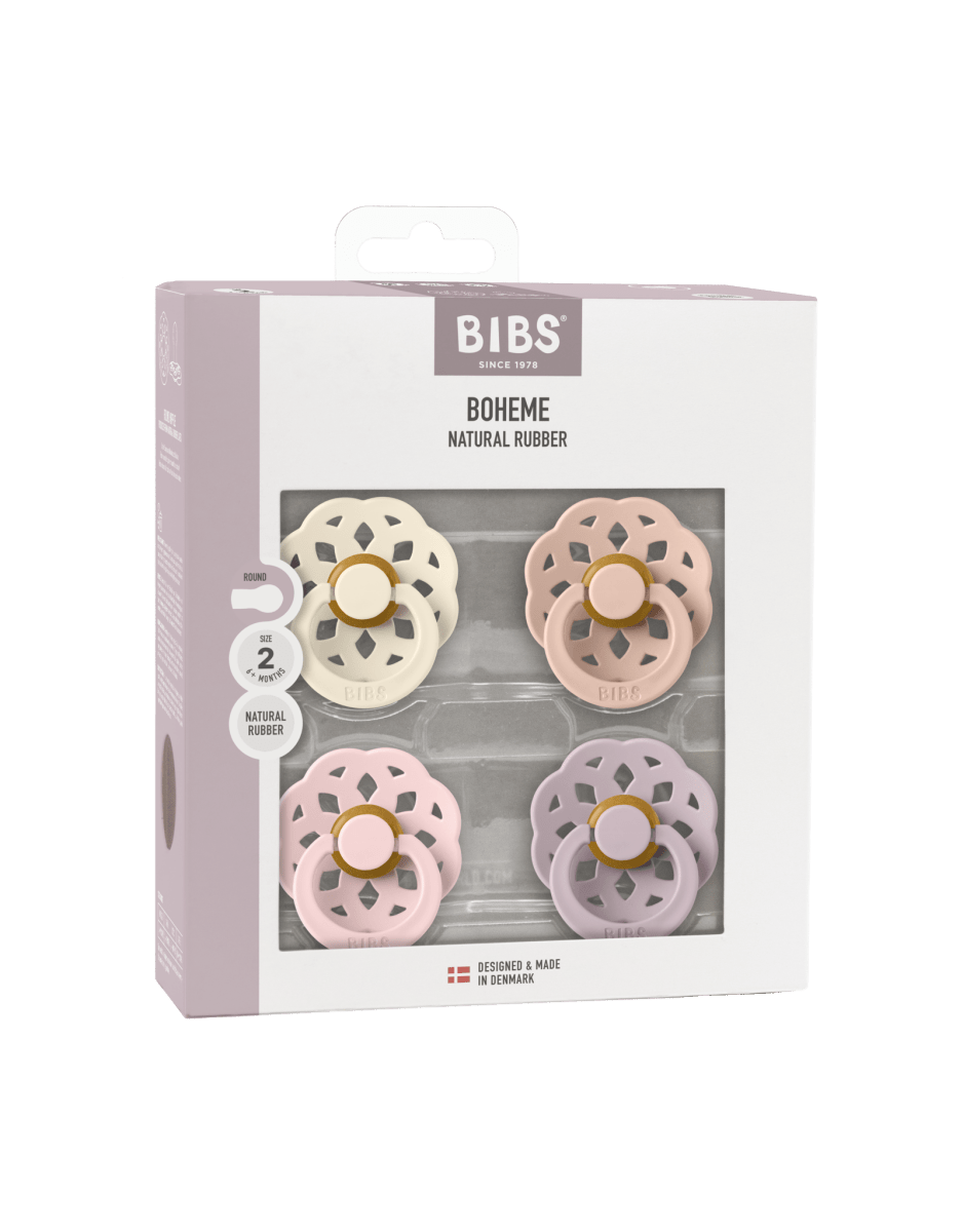 <tc>BIBS</tc> <tc>tétine</tc> Taille 2 Bohème Ivoire/Blush/Blossom/Lilas foncé 4pcs.