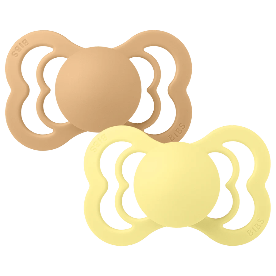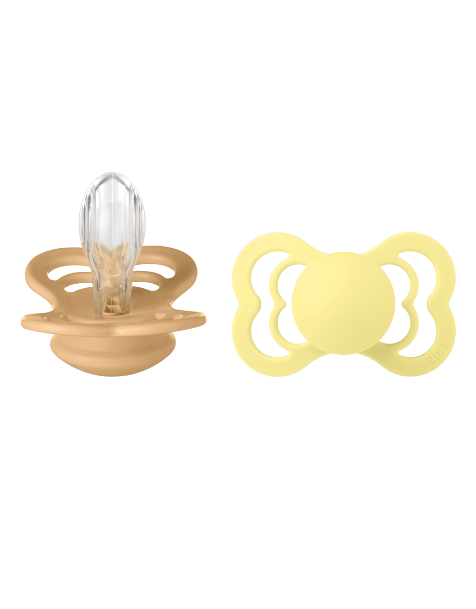 <tc>BIBS</tc> <tc>tétine</tc> Taille 2 Silicone Supreme Desert Sand/Sunshine 2pcs