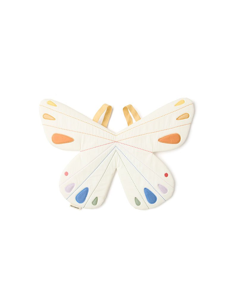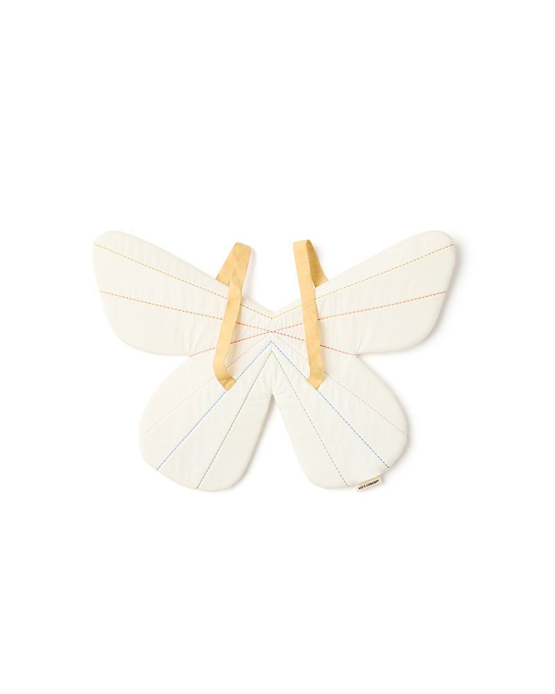 Laisse libre cours à l'imagination des enfants avec ces ailes de papillon blanches. Les bretelles élastiques permettent de les mettre et de les enlever facilement, et le léger rembourrage permet aux ailes de garder leur forme pendant le jeu. Les détails brodés ajoutent de la force et de la texture. Ces ailes encouragent la créativité, la narration d'histoires et le jeu actif lorsque les enfants font semblant de voler. Leur conception permet de les enfiler de façon autonome, ce qui favorise le jeu indépendant.