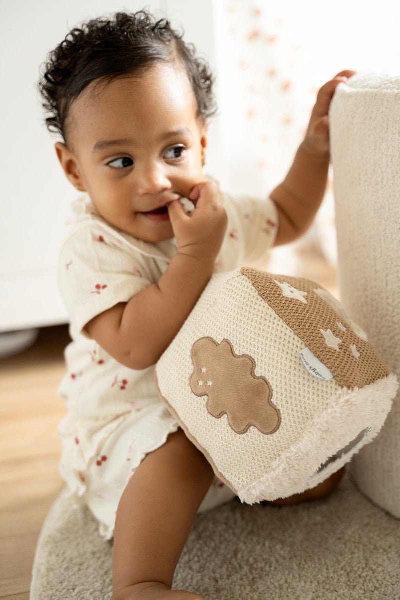 Le cube d'activités Paradis de Baby's Only invite ton petit à explorer, sentir et s'émerveiller. Chaque face de ce cube doux présente des formes apaisantes telles qu'une lune, une étoile et un nuage, qui stimulent de façon ludique la curiosité et les sens de ton bébé.