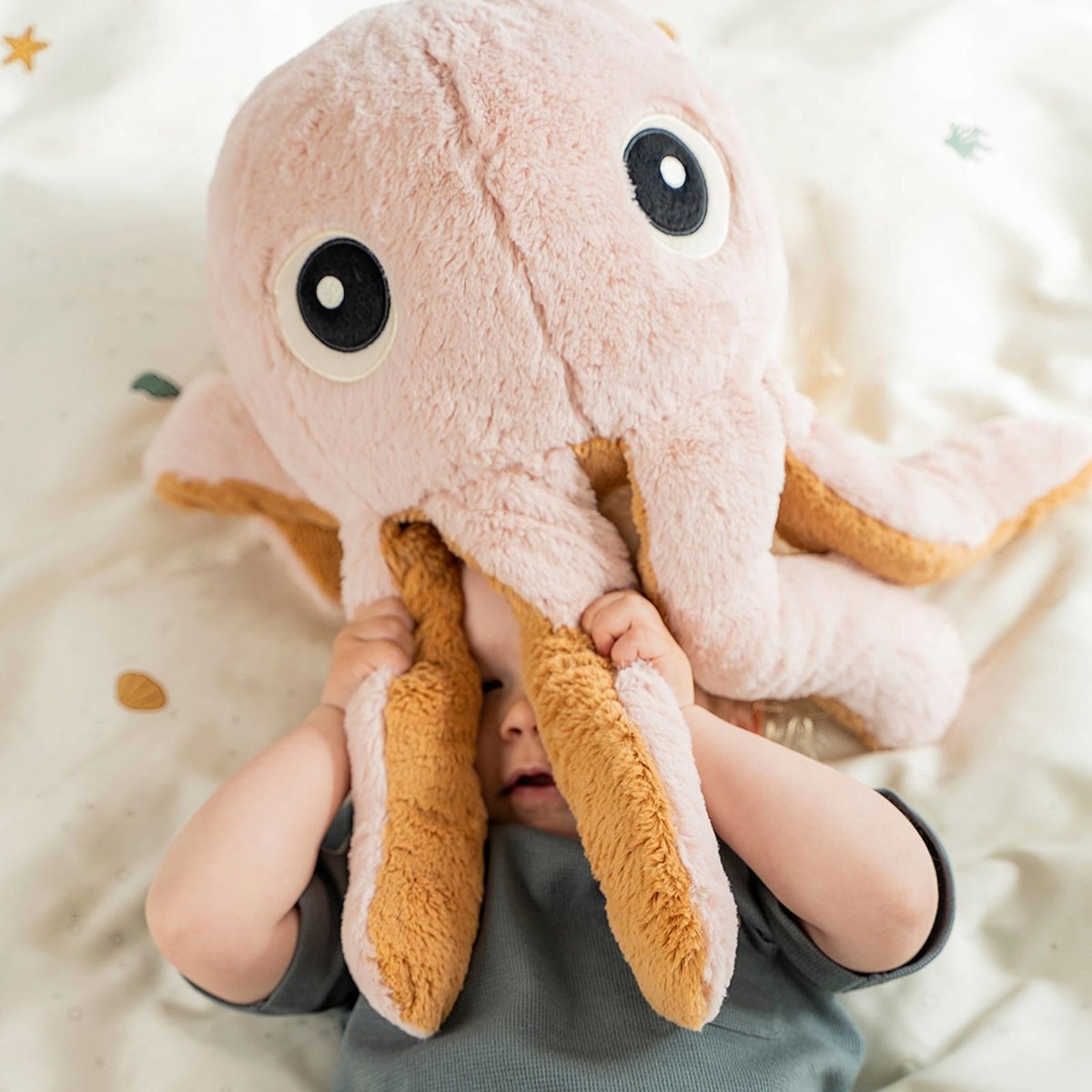 Done by Deer Jelly est une amie toujours serviable qui est toujours prête à te donner un coup de main - ou sept. Quand il est temps de faire des câlins et de s'endormir, Jelly te fera des câlins à n'en plus finir avec ses nombreux bras. Cette méduse mignonne et câline sera un compagnon fidèle pendant les récréations et un ami sûr à qui tenir la main pendant les soirées pyjama. La peluche de méduse super douce et moelleuse a une teinte poudre légère à l'extérieur et une teinte moutarde chaude à l'intérieur.