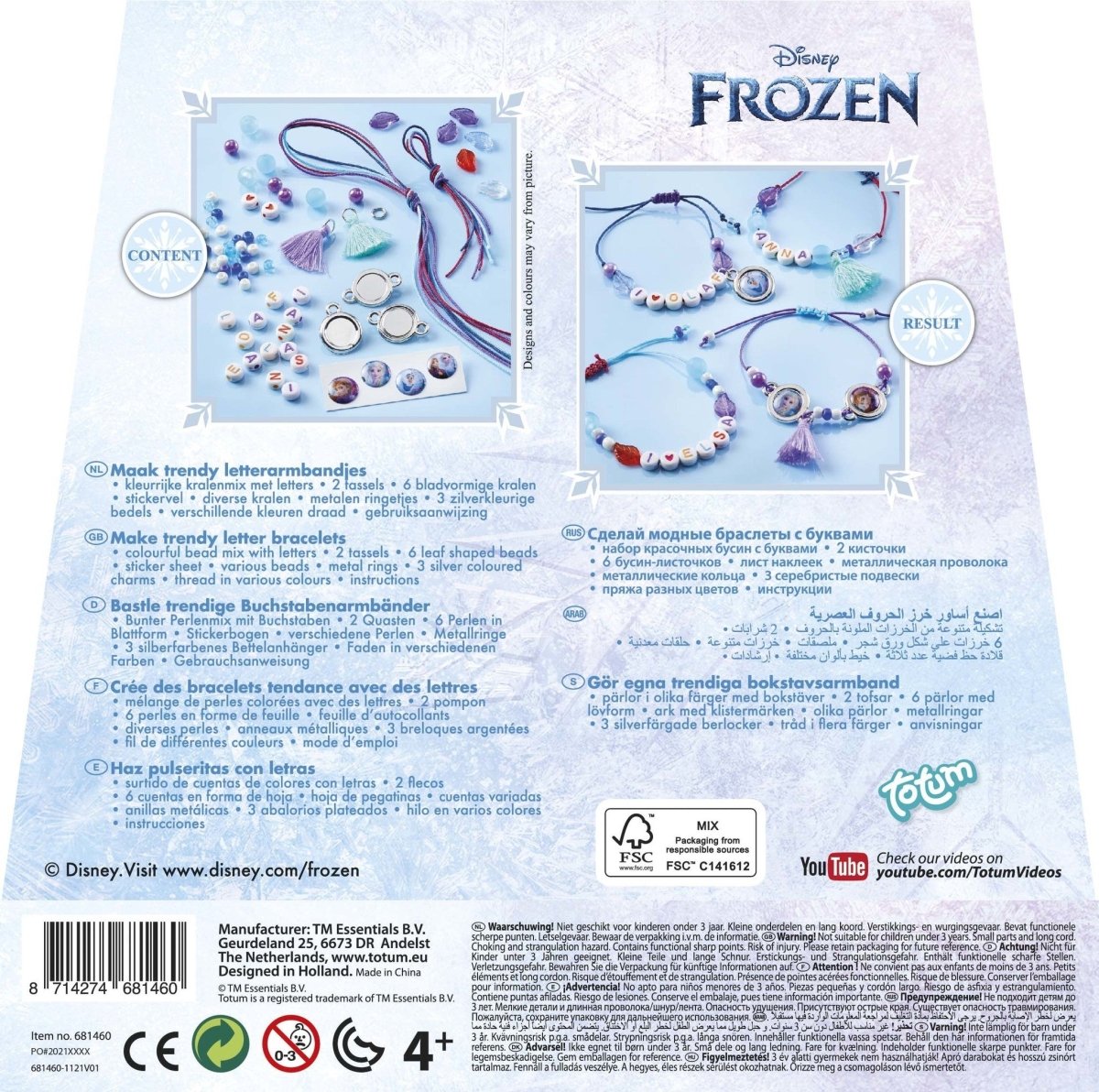 Avec ce set complet, tu réalises les plus beaux bracelets Disney Frozen avec des lettres, des breloques, des pompons et des perles, pour 4 bracelets mignons