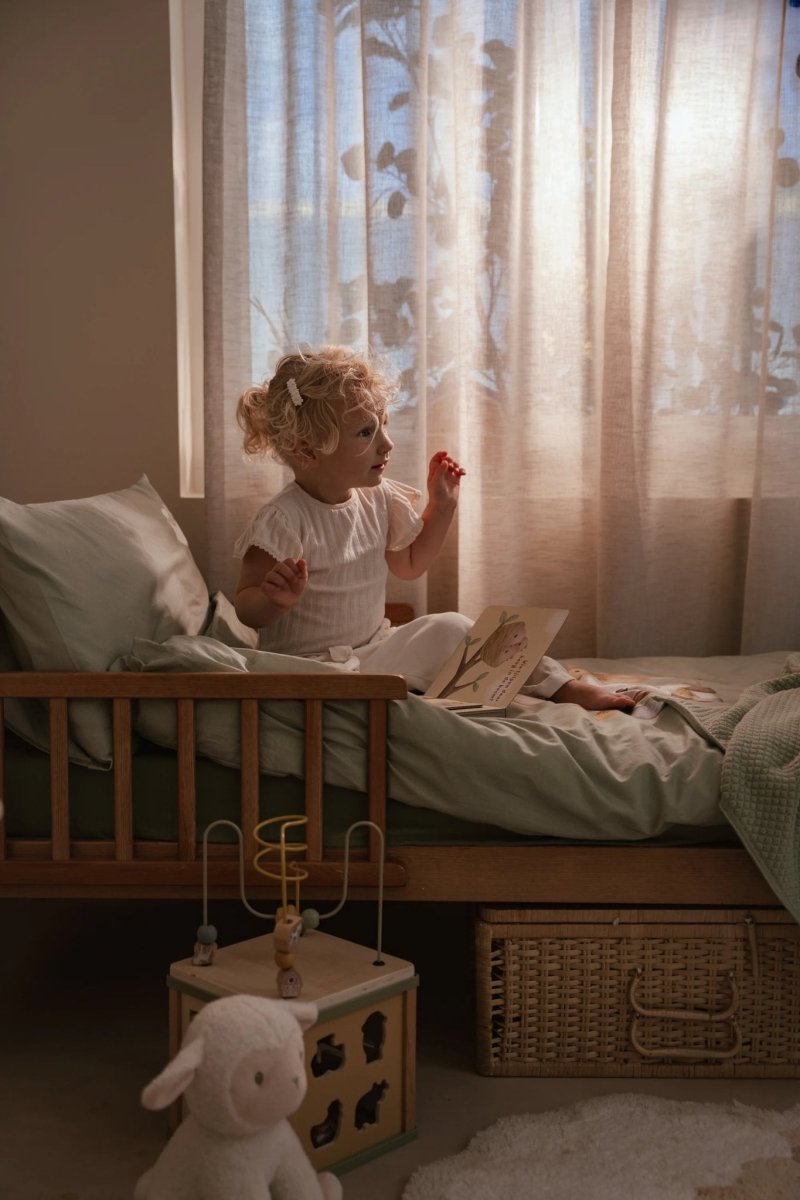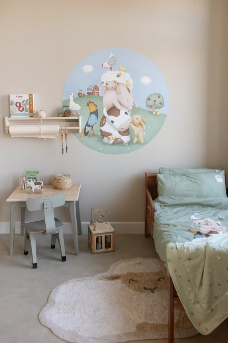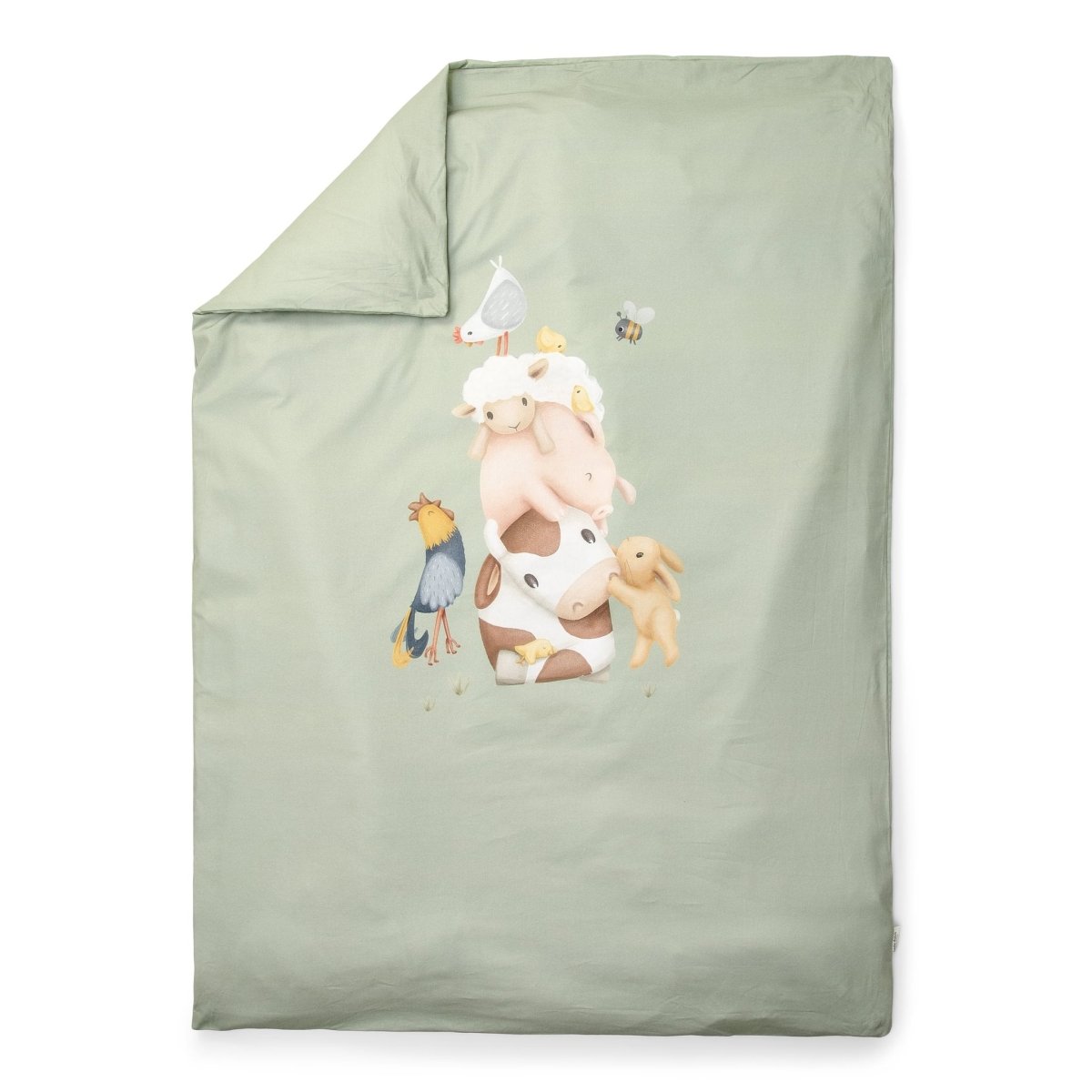 Ajoute une touche élégante et douillette à la chambre d'enfant avec un lit magnifiquement fait. Cette housse de couette emmènera ton petit dans des aventures de rêve à la ferme. Fabriquée en 100 % coton biologique, elle est merveilleusement douce au toucher et respirante, parfaite pour une nuit de sommeil confortable. La couleur verte unie, associée à une douce scène de ferme, crée un look ludique et apaisant. La housse de couette a une taille de 110 x 140 cm et une taie d'oreiller assortie de 40 x 60 cm. Tous deux sont soigneusement finis et conçus pour offrir à ton petit un merveilleux sommeil. Un choix parfait pour les petits amoureux de la ferme!