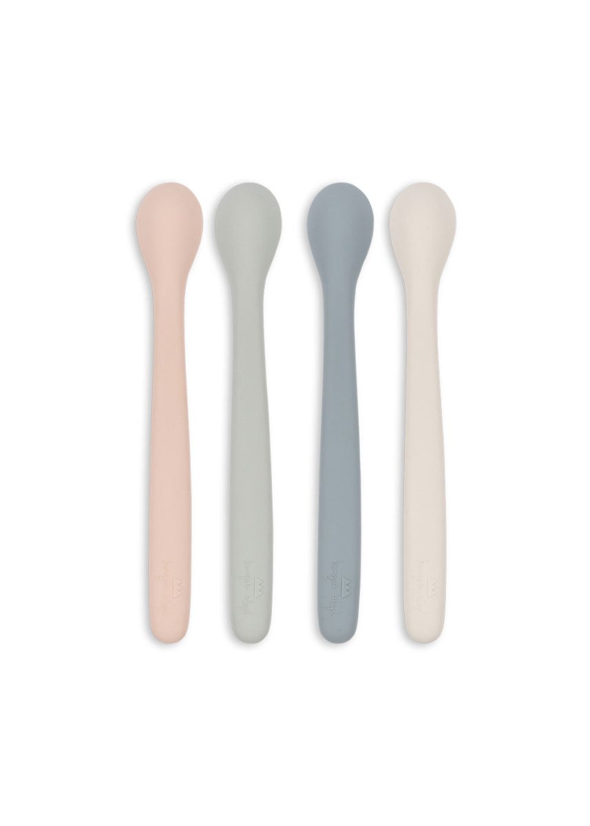 Nos cuillères en silicone souple pour bébé de Konges Slojd rendent l'heure des repas beaucoup plus amusante lorsque ton bébé commence à découvrir de nouveaux goûts vers l'âge de 6 mois.