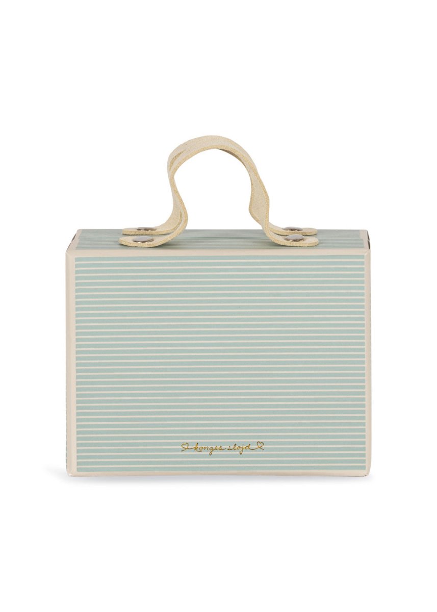 L'ensemble comprend un ours en peluche, une valise, un petit passeport, une chaise de plage, une serviette, de la crème solaire et une planche de surf. Parfait pour les jeux imaginatifs et les histoires d'aventure en déplacement ou à la maison.