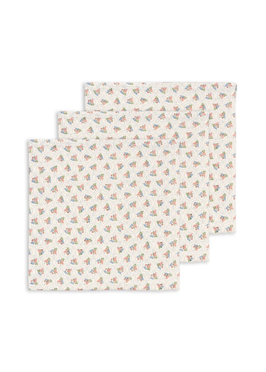 Chiffons doux et polyvalents en mousseline de Konges Slojd, idéaux pour changer les couches, les déversements, comme couverture légère ou comme tampon à crachat. Fabriquées en 100% coton biologique et certifiées GOTS (CU1094701), garantissant un choix durable et respectueux de la peau. Disponible dans le design Verona Blues avec des imprimés signature.