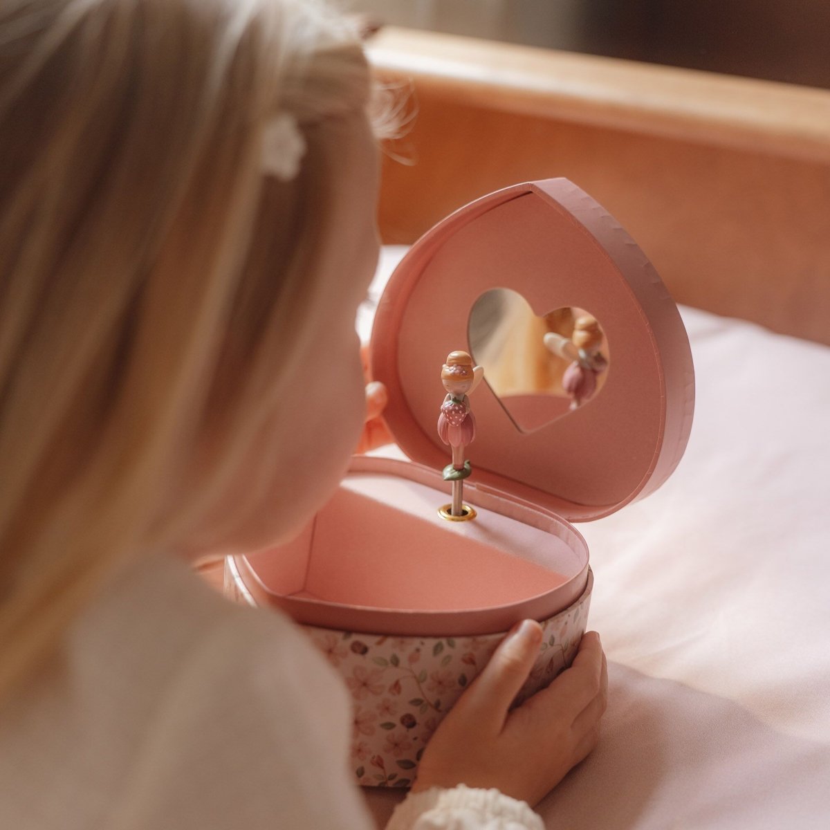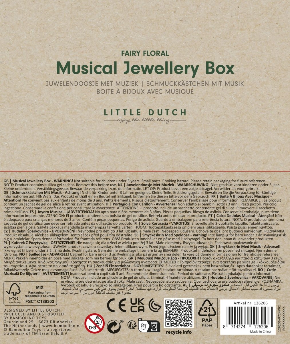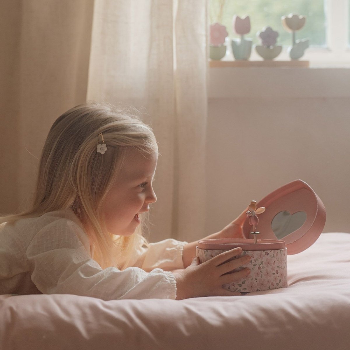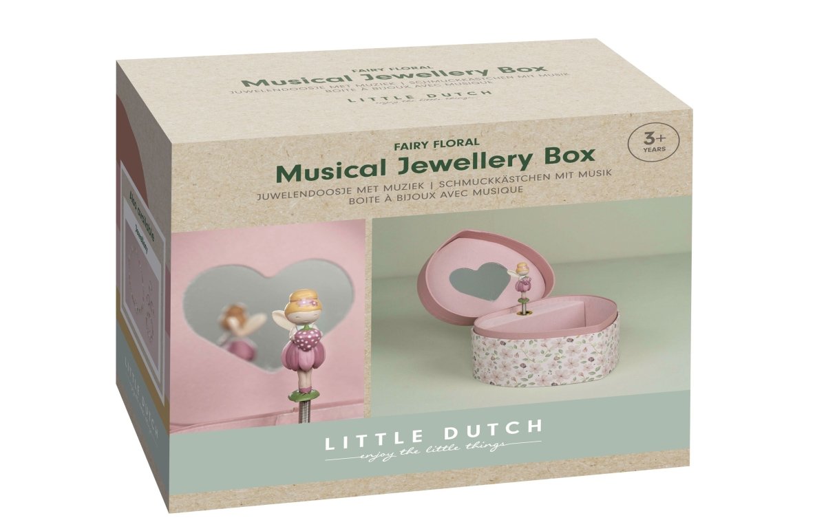 Entre dans un monde d'enchantement avec la Little Dutch boîte à bijoux avec musique. Cette boîte colorée offre suffisamment d'espace pour les plus beaux bijoux et trésors. Lorsque la boîte s'ouvre, une musique retentit tandis qu'une fée danse devant le miroir. Fonctionne sans piles, le mécanisme musical est mis en marche à l'aide de la clé située à l'arrière de la boîte. Un objet précieux à chérir, qui stimule et inspire les sens de ton petit.
