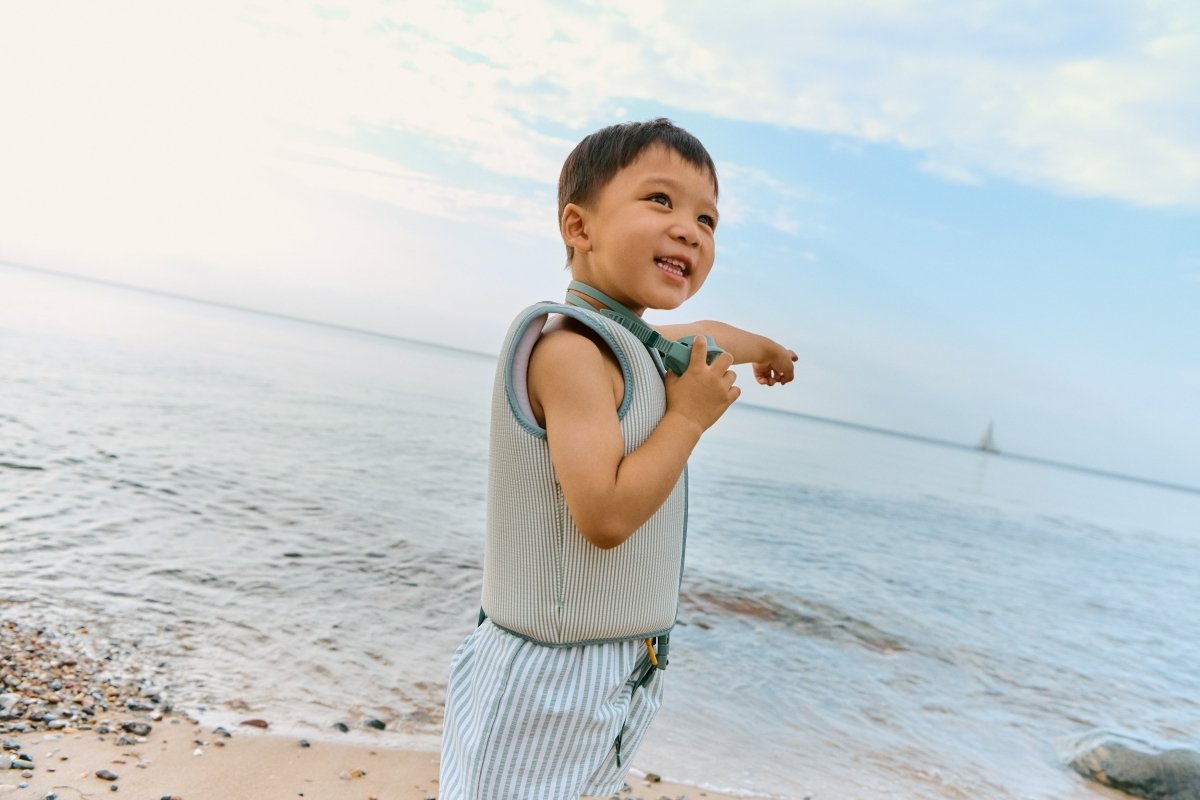 Laisse ton enfant explorer l'eau en toute sécurité et en toute confiance grâce à ce joyeux gilet de sauvetage. La conception légère et flexible offre une liberté de mouvement optimale, tandis que les rayures colorées lui confèrent un look estival.