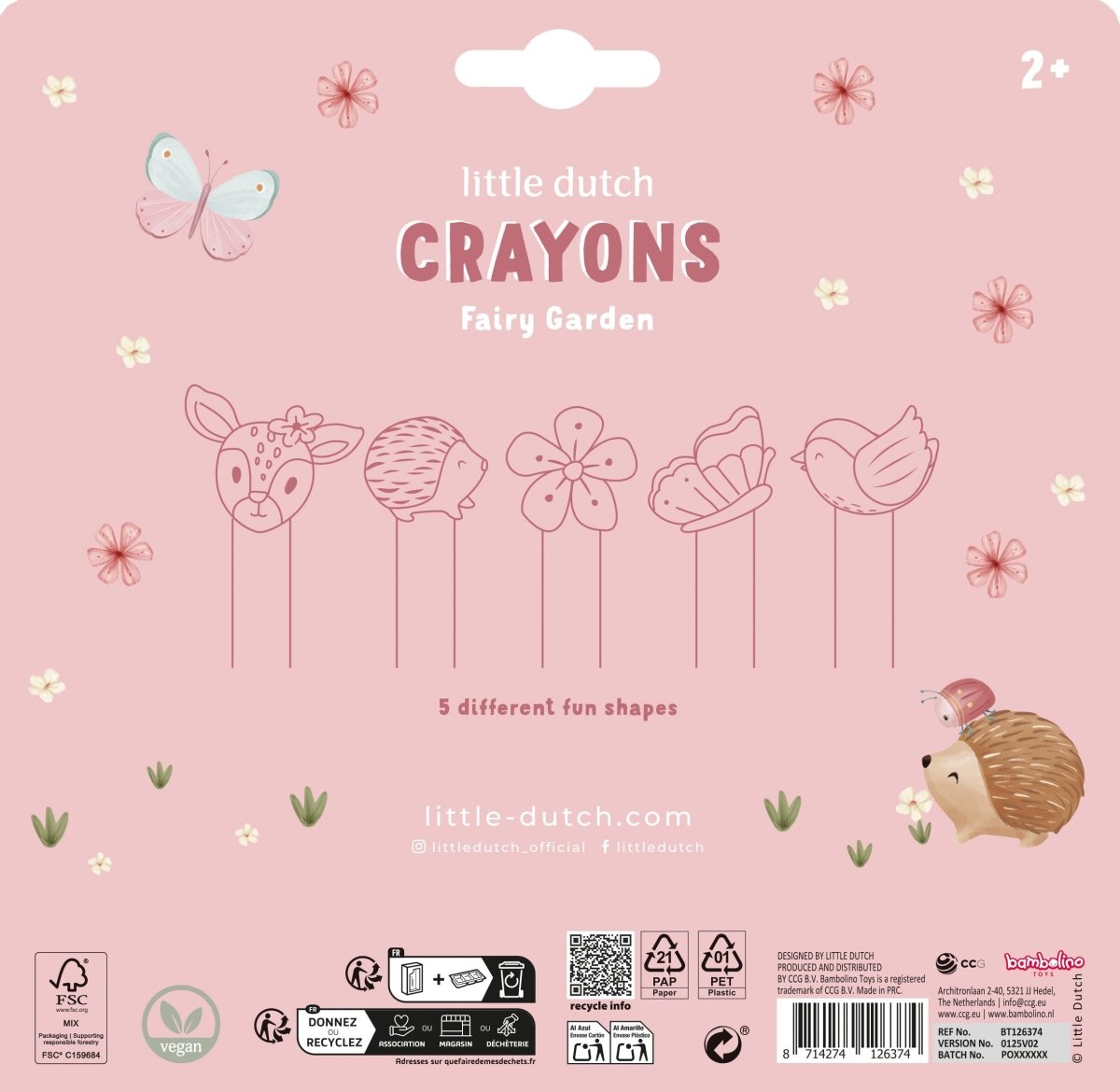 Ce set contient 5 crayons de cire robustes aux couleurs gaies, chacun avec une pointe unique en forme de hérisson, de fleur, de cerf, de papillon ou d'oiseau. Parfait pour dessiner ainsi que pour les jeux imaginatifs. Grâce à leur format robuste, ils sont faciles à tenir par les mains des petits enfants. Pas besoin d'appuyer fortpour obtenir les plus belles couleurs sur le papier. Convient aux enfants à partir de 2 ans.