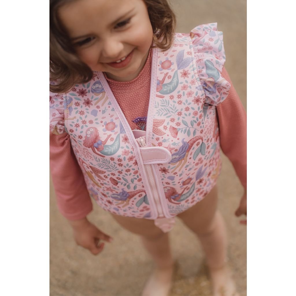 Laisse les jeunes nageurs entrer dans l'eau en toute sécurité et confortablement avec le Little Dutch gilet de sauvetage Dreamy Mermaid. Le joyeux motif de sirène et de fleur de couleur rose tendre rend la natation encore plus amusante et élégante.