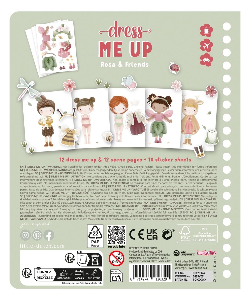 Que vas-tu porter aujourd'hui ? Avec ce livre d'habillage Rosa & ; Friends Fairy Garden, tu te transformeras en véritable styliste de mode. Laisse libre cours à ton imagination en habillant Rosa, Evi et Julia dans le cadre enchanteur du jardin des fées. Le livre contient 24 pages d'images, ainsi que 12 pages d'autocollants des plus beaux vêtements et accessoires. Que tu optes pour une robe de fée de conte de fées ou pour un look décontracté, c'est à toi de choisir. Le livre est fabriqué en carton solide avec des motifs et des couleurs Little Dutch reconnaissables et dispose d'une reliure à anneaux pratique. Une activité idéale pour la maison et en déplacement !