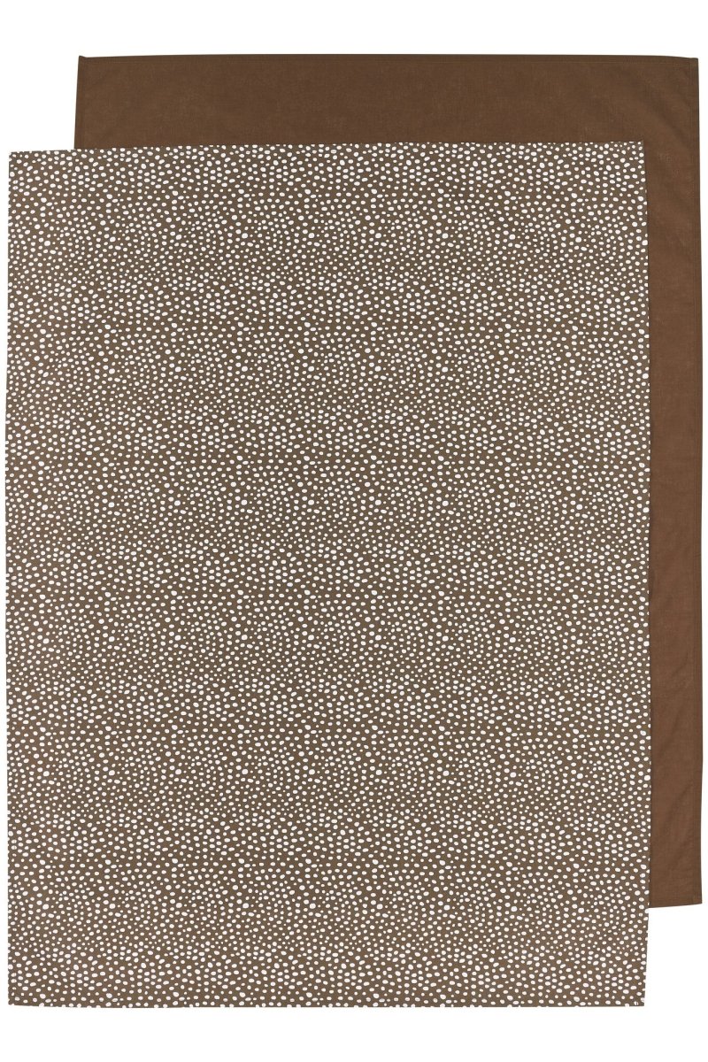 Ce set comprend deux draps, pour que tu puisses immédiatement en attraper un propre en cas d'accident. L'un a l'imprimé avec des points de guépard et l'autre a une couleur unie.
