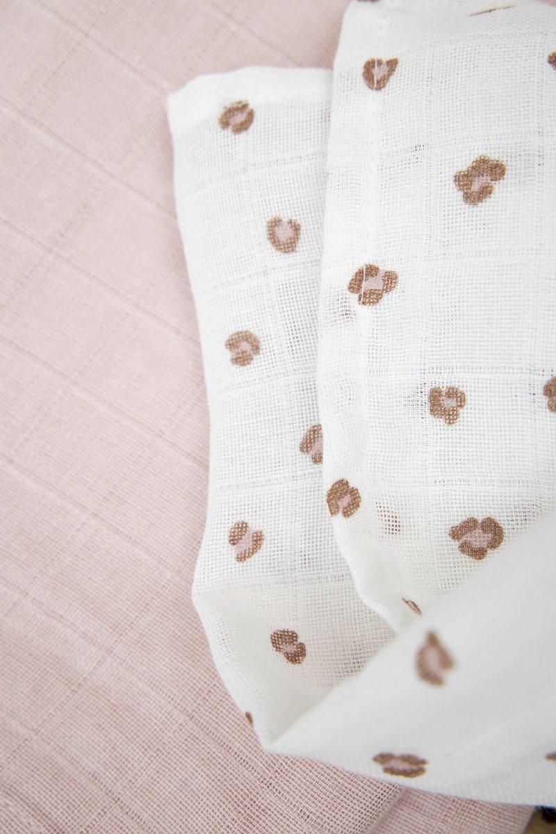 Cet ensemble est imprimé d'une joyeuse mini panthère. Ces chiffons polyvalents de 70x70 cm sont fabriqués en 100 % coton. La solution parfaite comme serviette après le bain. Le coton hydrophile sèche rapidement et absorbe bien l'humidité, ce qui te permet de tapoter ton petit pour le sécher, même dans les moindres plis. Le tissu est très doux, ce qui est exactement ce dont les peaux délicates des bébés ont besoin.