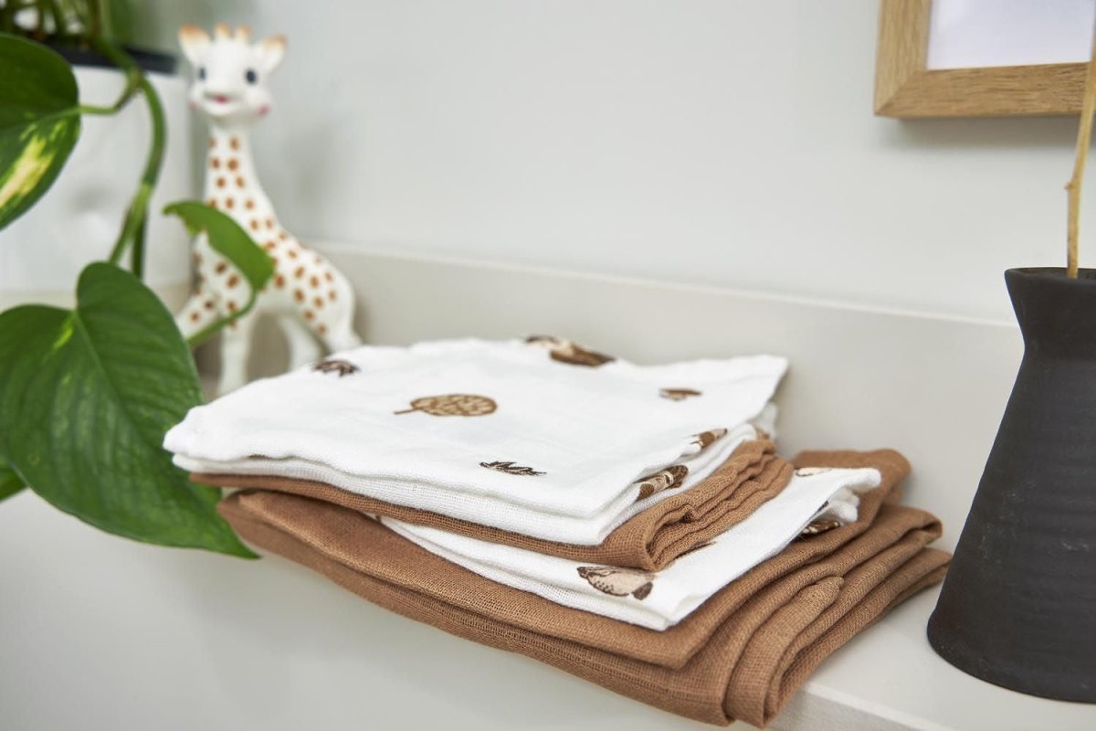 Un produit que tu trouveras de toute façon sur toutes les listes d'articles essentiels pour bébé sont les linges hydrophiles. Tu n'en as jamais assez, c'est pourquoi nous avons créé le Meyco coffret de départ hydrophile pour bébé. Tu as donc tous les articles de soins nécessaires et hydrophiles en une seule fois. Cet Meyco ensemble de départ hydrophile pour bébé Animaux de la forêt comporte un imprimé joyeux avec des animaux de la forêt et de jolis linges unis de couleur assortie. Les différents articles du set sont indispensables et multifonctionnels.