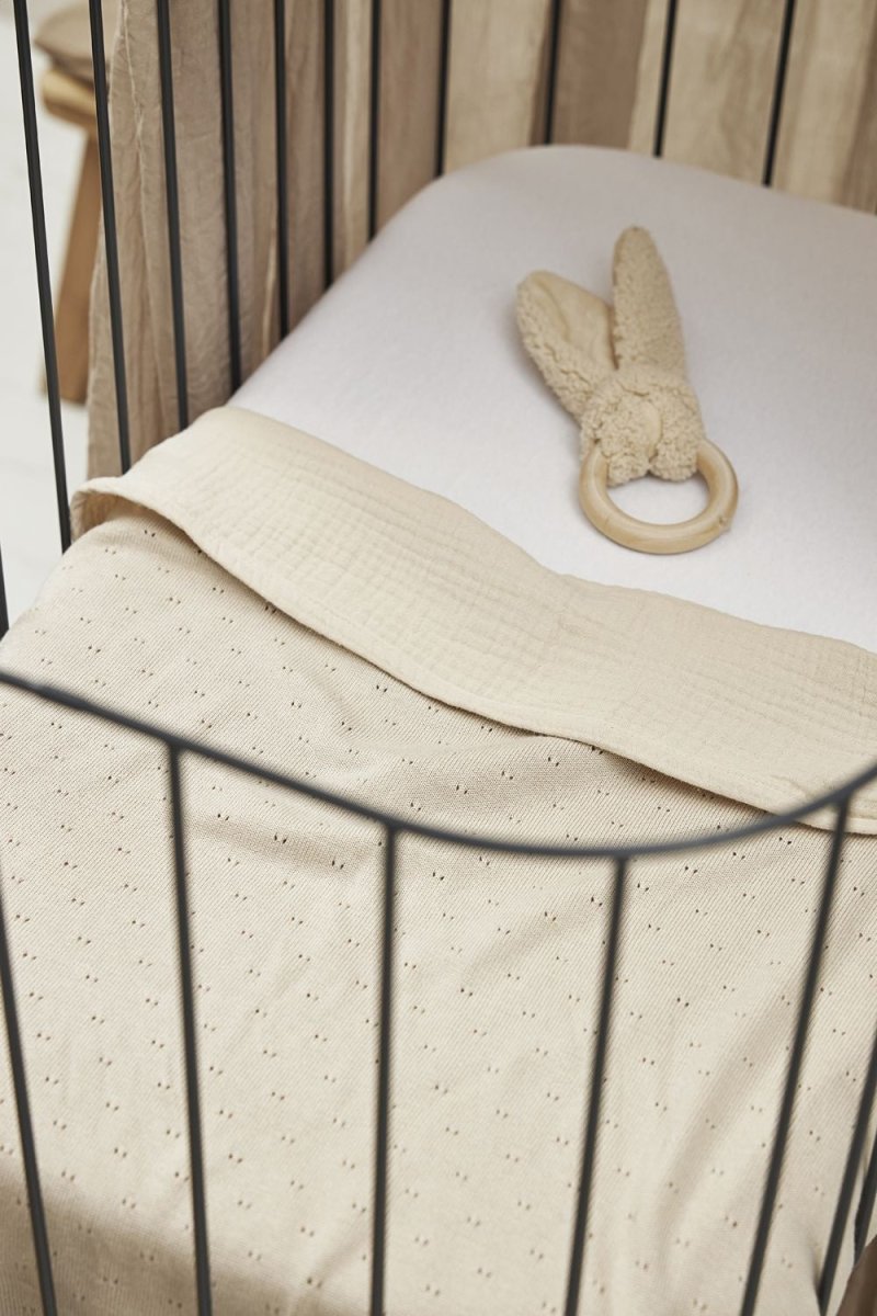 La feuille est disponible en différentes couleurs. Idéales parce qu'elles se combinent toujours parfaitement avec le reste de la collection Meyco Baby et s'accordent avec le style de la chambre du bébé. Les draps sont disponibles en deux tailles : un drap de berceau de 75x100 cm pour le berceau et le landau et un drap de lit de 100x150 cm. Tu utilises le drap sous une couverture.