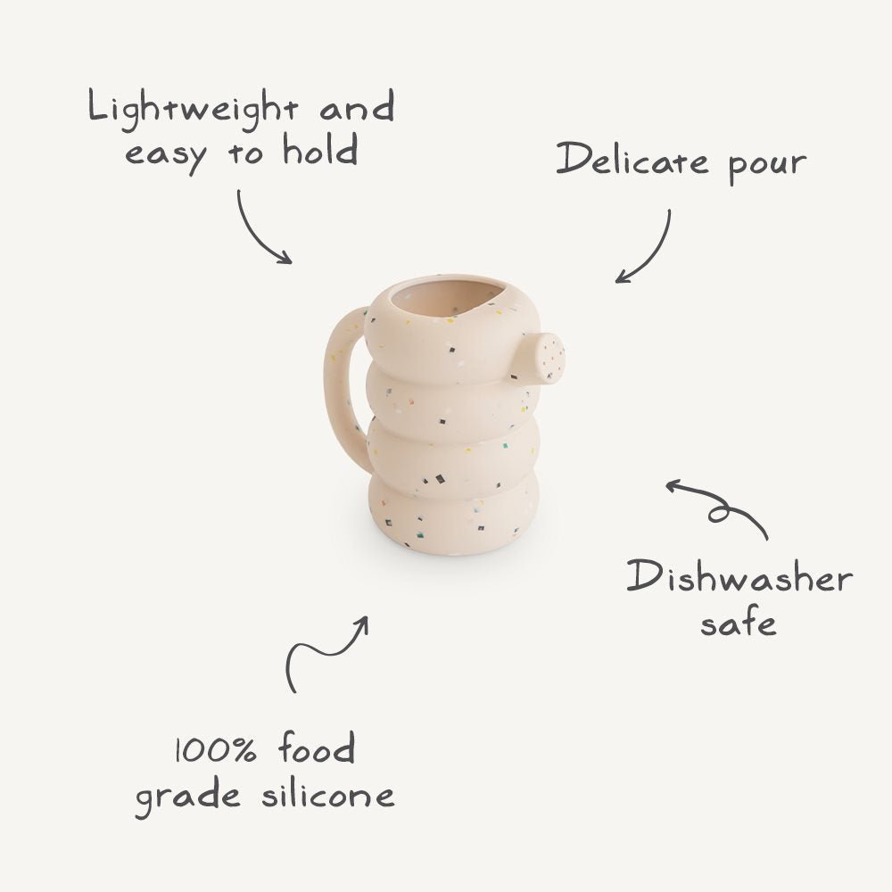 Cet adorable jouet est conçu pour les petites mains et fabriqué en silicone doux et flexible ; il est parfait pour verser doucement, ramasser et s'amuser à éclabousser. La forme légère et facile à tenir encourage le développement de la motricité fine et ajoute un élément ludique aux activités avec l'eau.