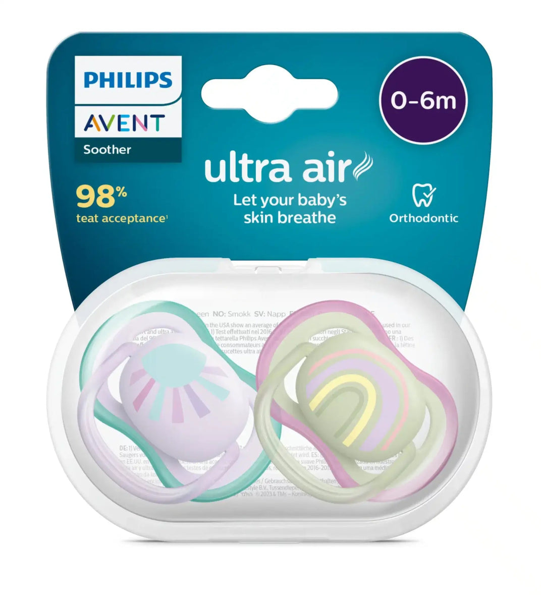 Assouplir avec le confort de l'air. Le Philips Avent ultra air-fopsucette a des trous extra grands pour garder la peau de ton bébé au sec. Disponible dans différentes couleurs et motifs.