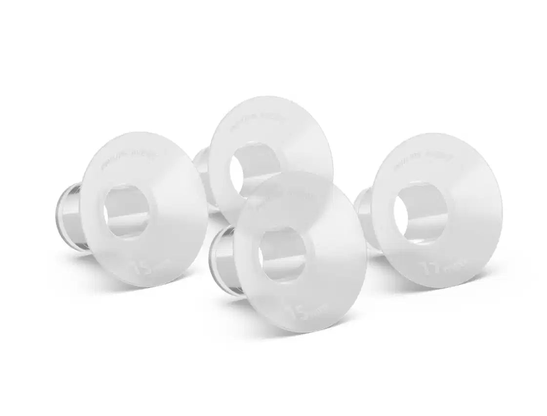 Comme chaque mère est différente, ces inserts de protection mammaire de 15 et 17 mm pour les mamelons plus petits offrent un ajustement confortable et sûr. À utiliser en combinaison avec les coussinets mammaires de 21 mm et les Philips Aventcoupes de recueil.