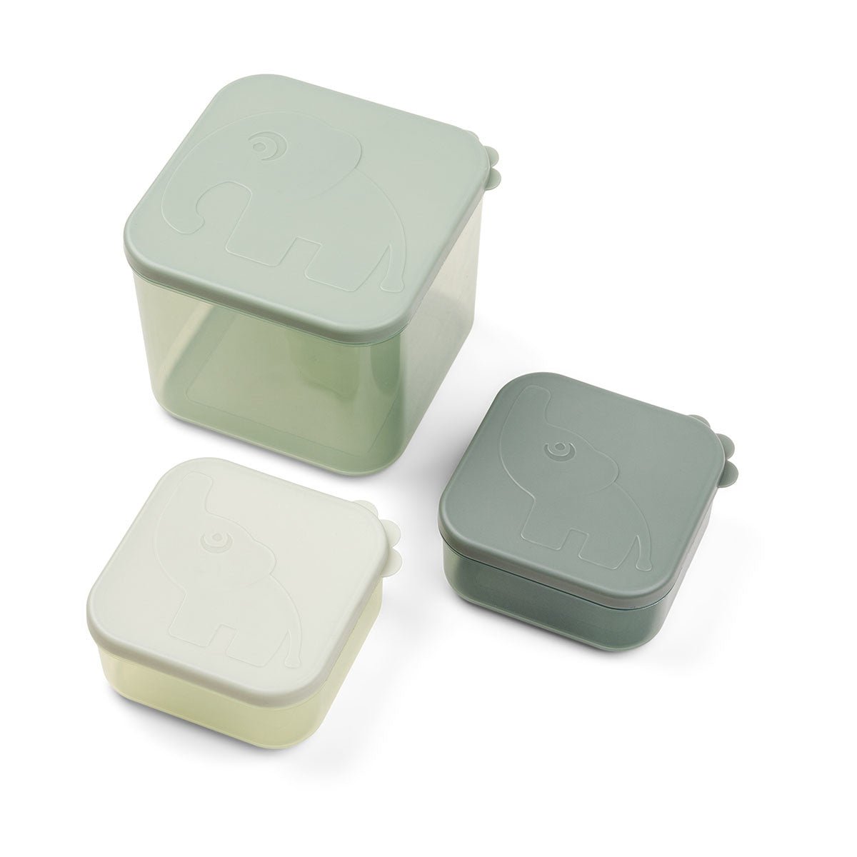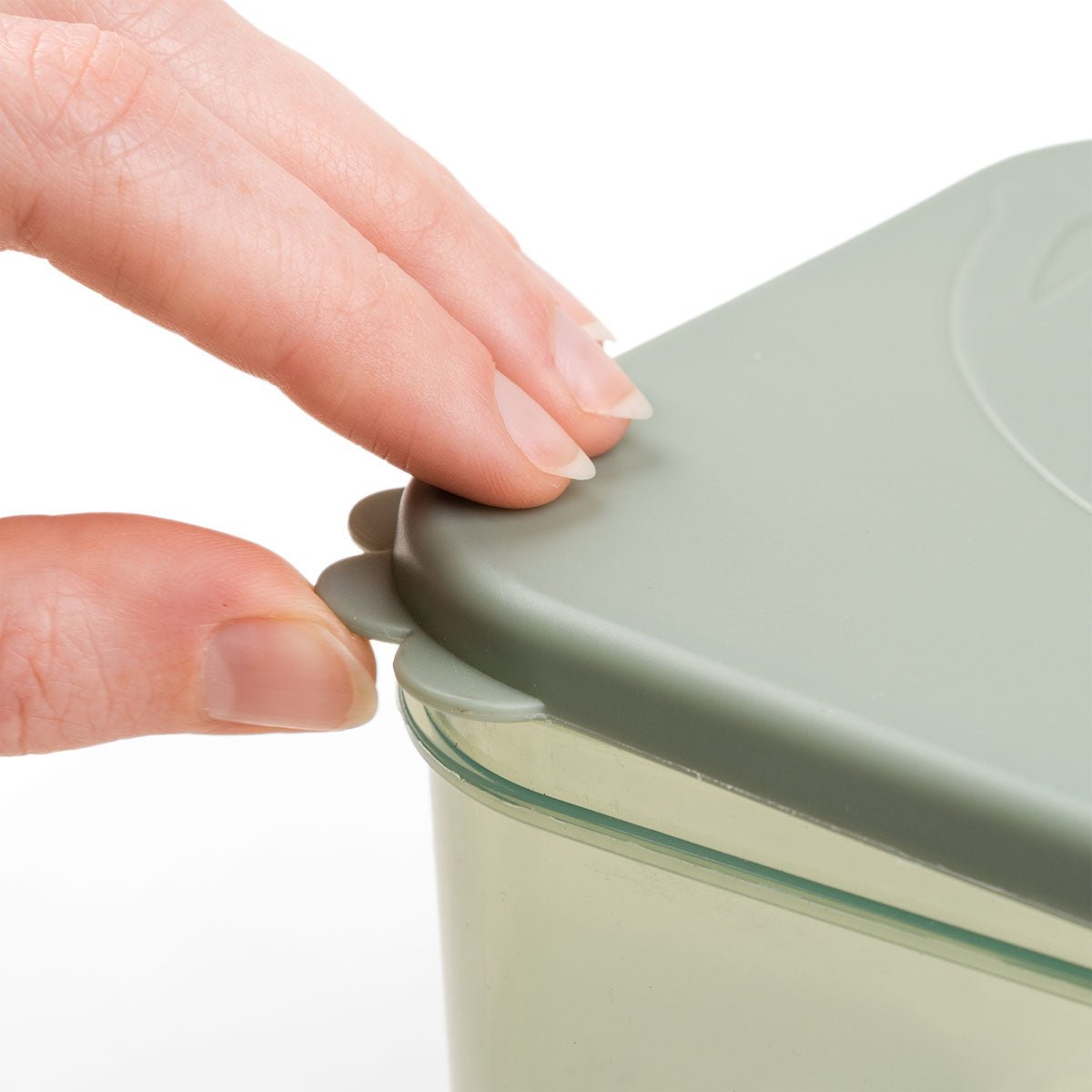 Emballe les plats préférés de la famille dans ces chouettes récipients transparents de conservation des aliments dans les tons de vert. Les couvercles ont de douces écailles en croco pour faciliter l'ouverture et ils sont embossés avec des motifs d'Elphee.