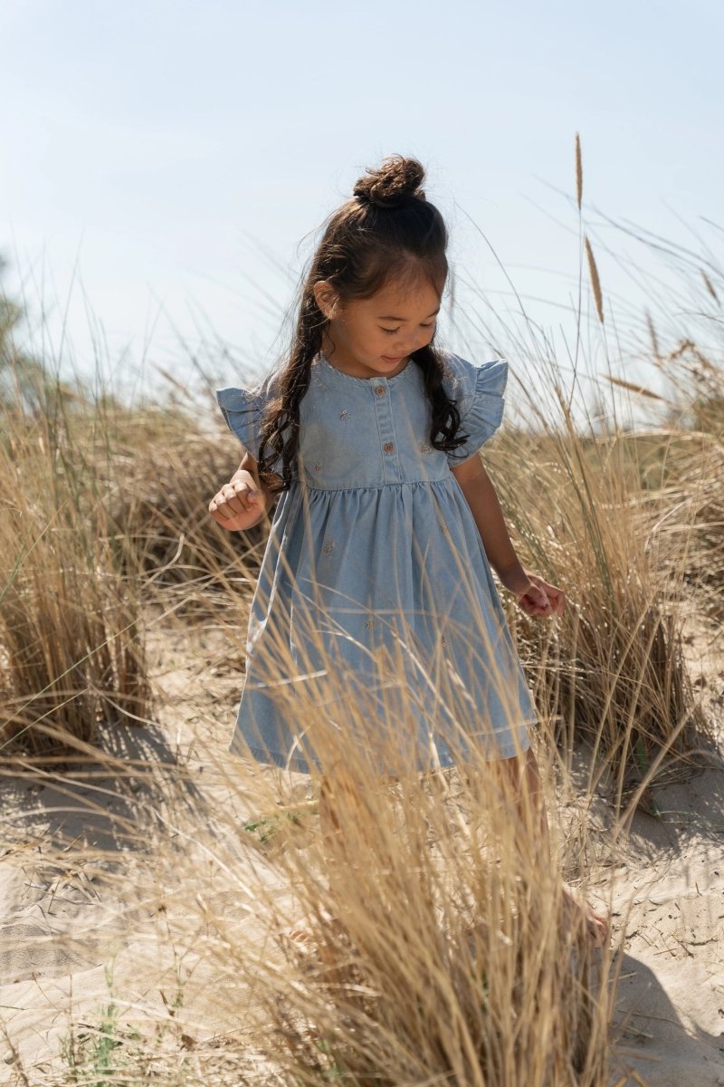 Une robe en denim avec une touche de douceur. Cette robe à manches courtes est confectionnée dans une qualité de denim léger et agrémentée de délicates fleurs brodées - un détail subtil qui la rend juste un peu spéciale.