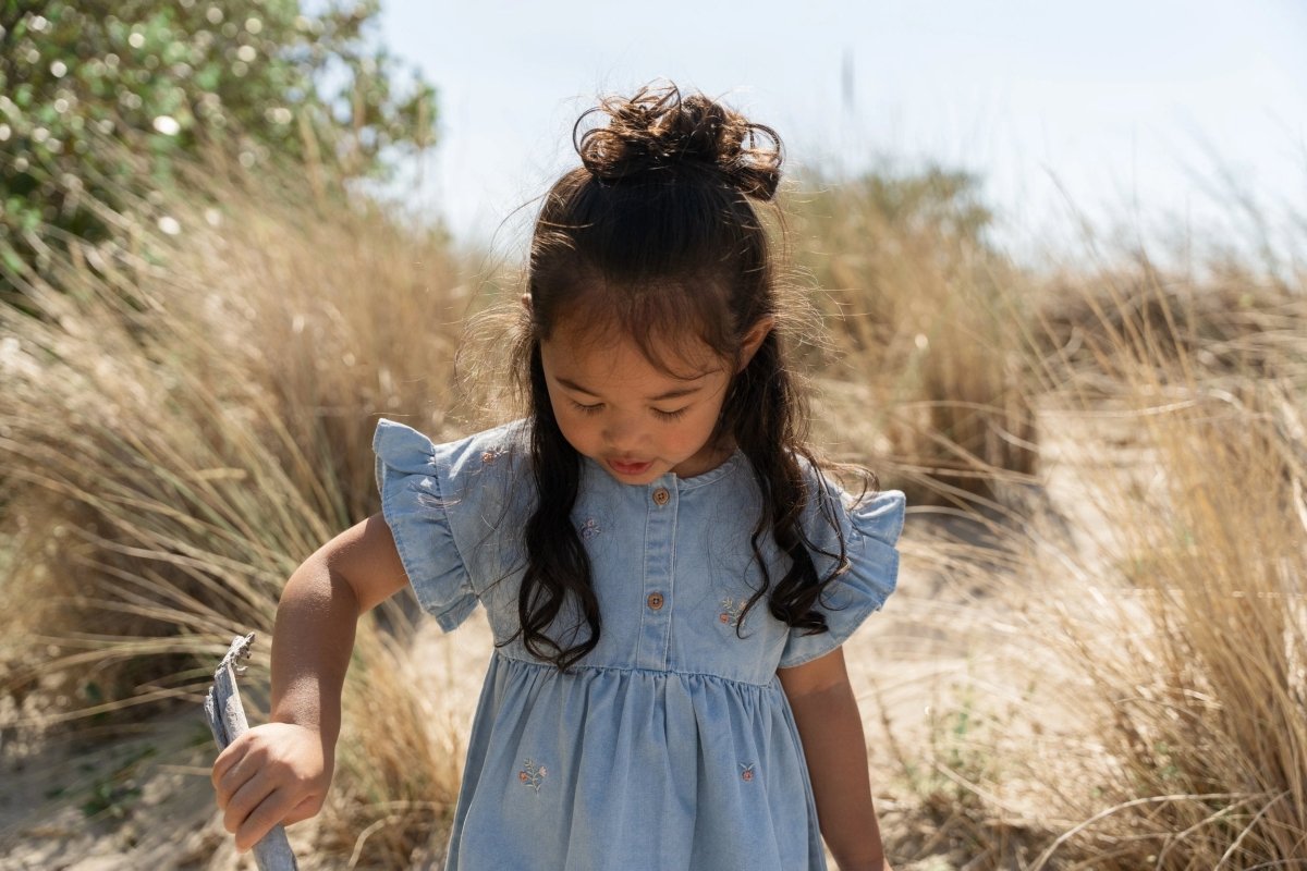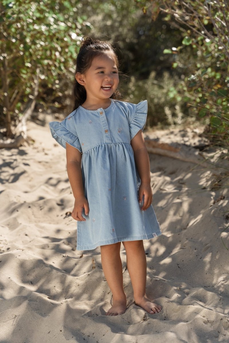 Les volants le long de l'ouverture des manches ajoutent une touche ludique, tandis que les boutons aspect bois facilitent l'habillage et le déshabillage. Fabriquée en coton biologique et certifiée Oeko-Tex - pour un choix sûr et responsable, chaque jour. Une belle robe pour des journées d'été sans fin, d'une promenade matinale à un après-midi à jouer dans l'herbe.