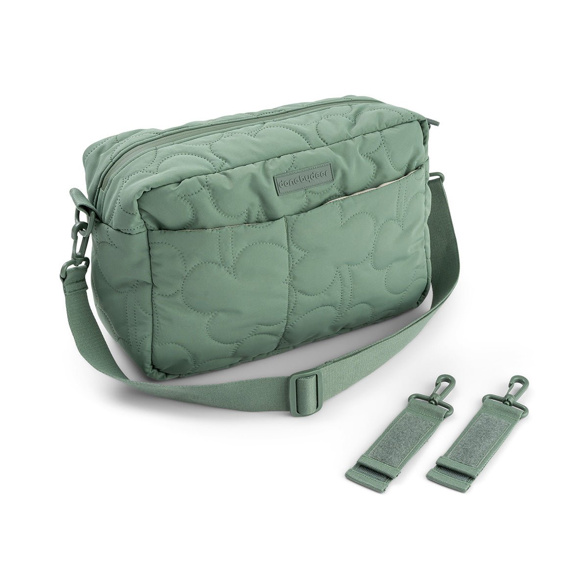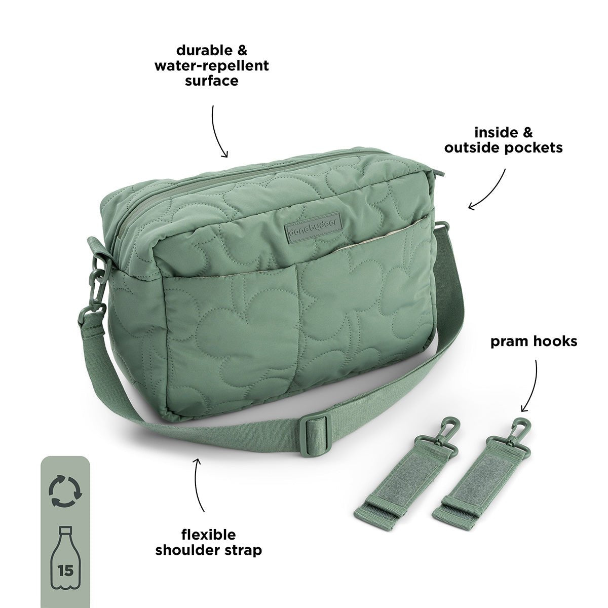 Ce sac de landau rembourré est à la fois pratique et élégant. Le sac est durable, hydrofuge et offre suffisamment d'espace de rangement pour tous les objets indispensables au quotidien. Grâce à la bandoulière flexible et aux crochets de landau inclus, tu peux facilement porter le sac ou l'attacher solidement au landau.