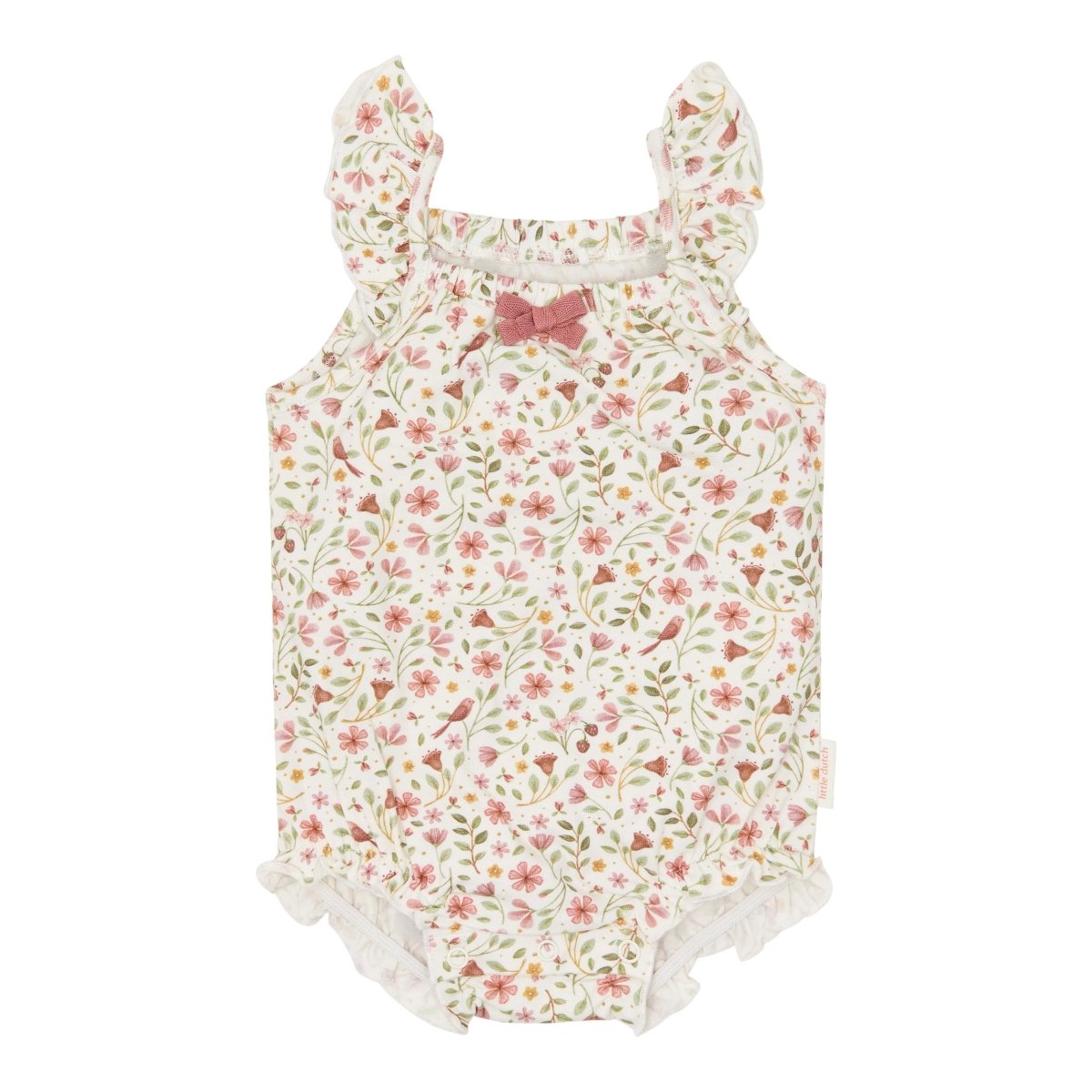Ce body sans manches de la collection Fairy Wonders invite à une exploration sans fin. Le tissu doux est merveilleusement confortable sur la peau de ton bébé. Laisse ton petit briller dans l'imprimé coloré Fairy Garden avec d'adorables fleurs et des amis qui voltigent. Les jolis volants sur les épaules sont terminés par une bordure de surpiqûres roses pour un détail sophistiqué, tandis que le petit nœud au centre de l'avant complète le look.