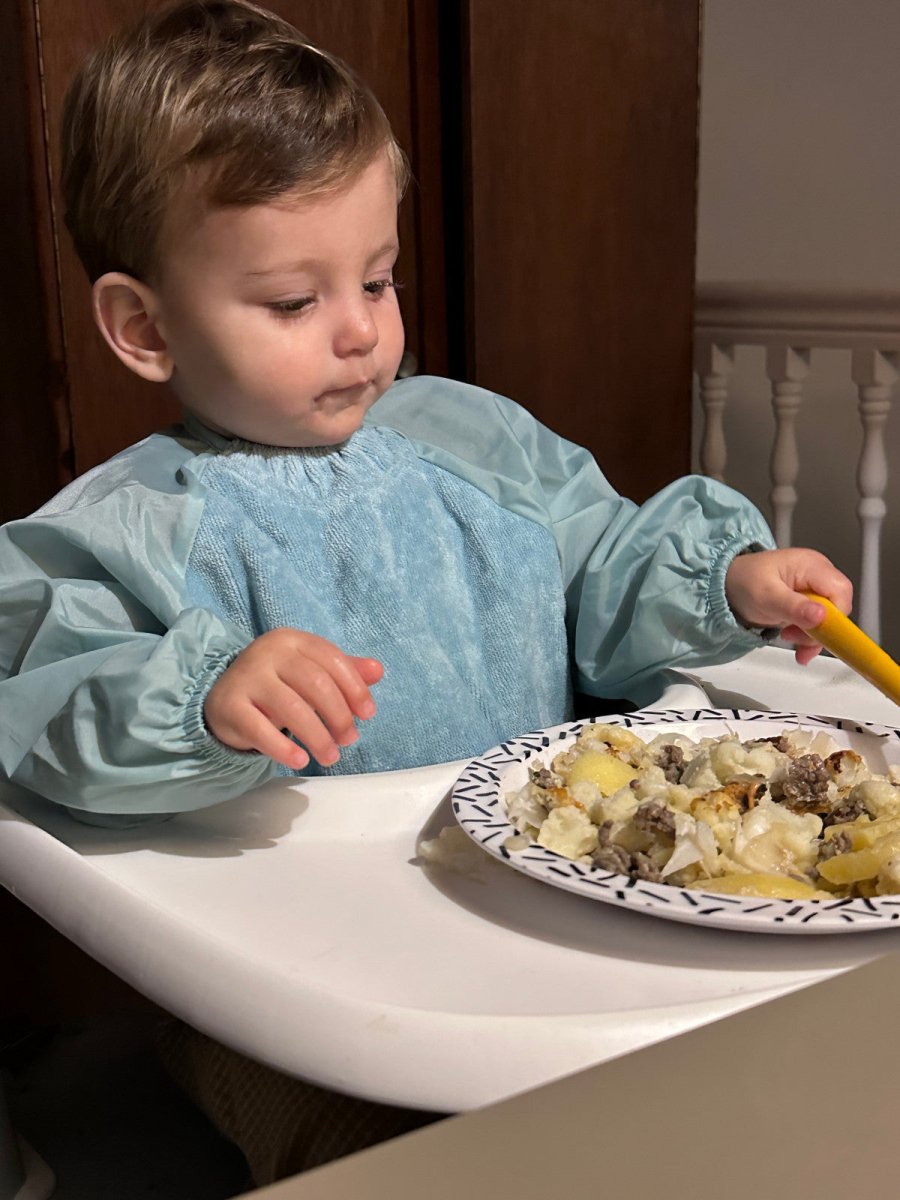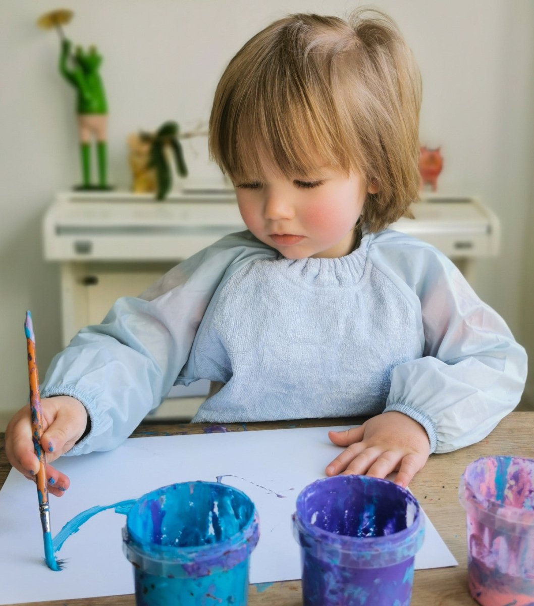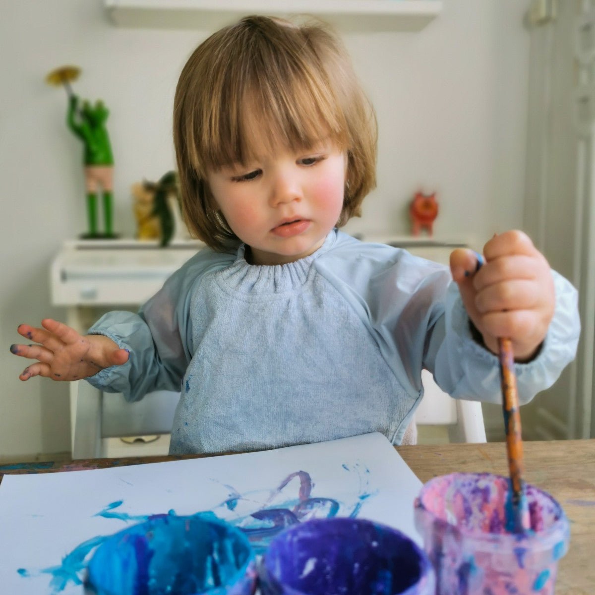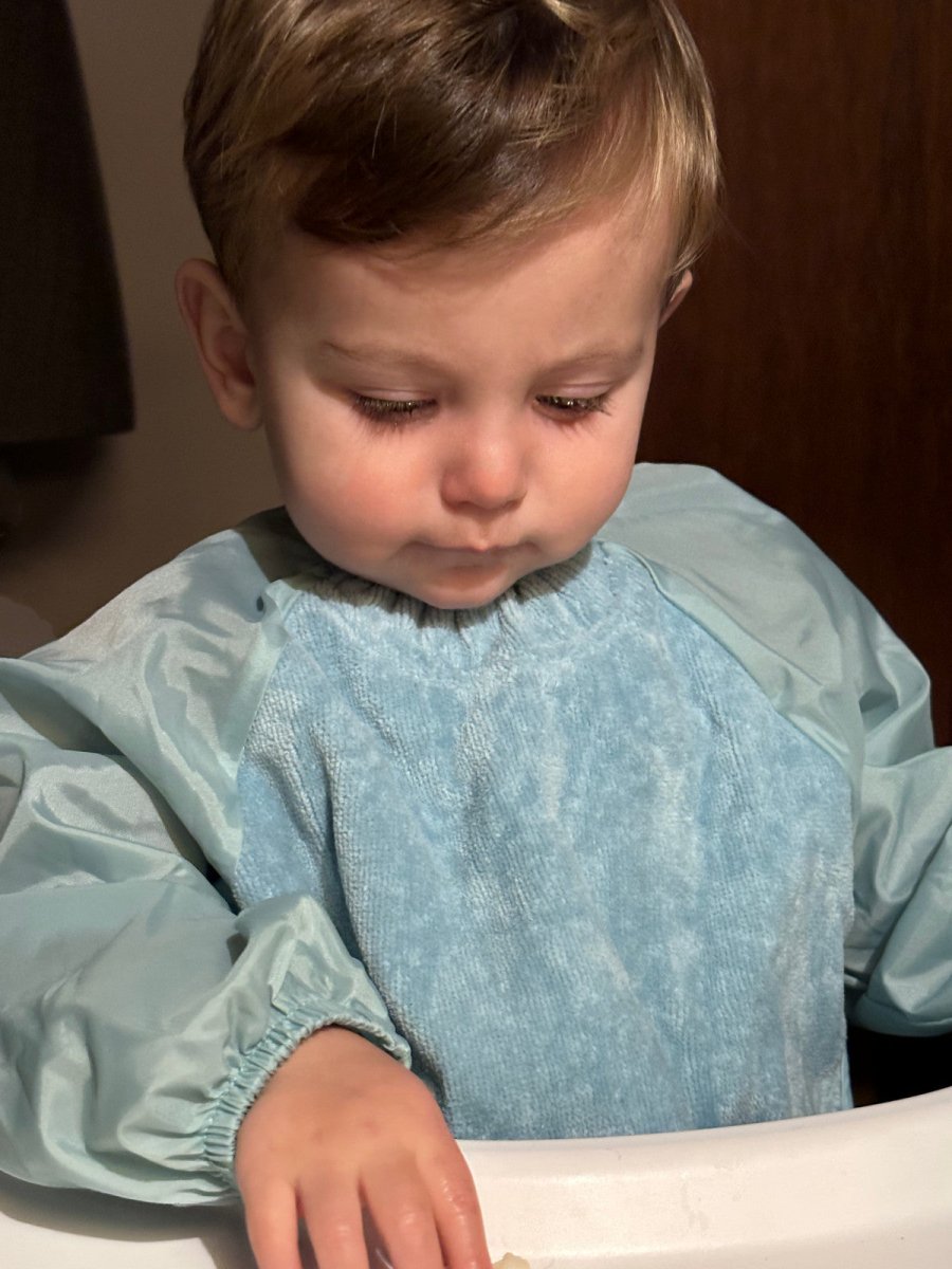 Bavoir Silly Billyz petit avec manche longue bleu poussière
