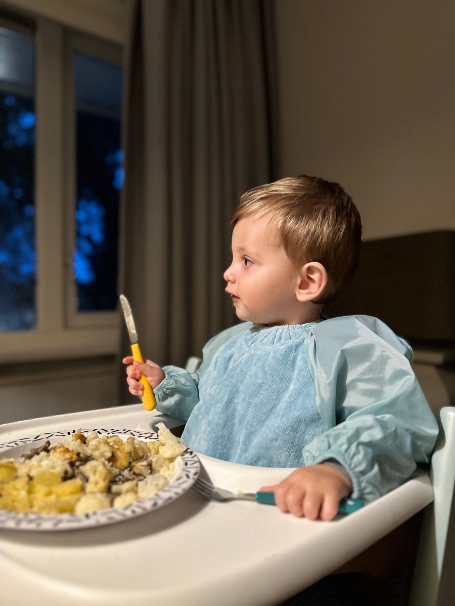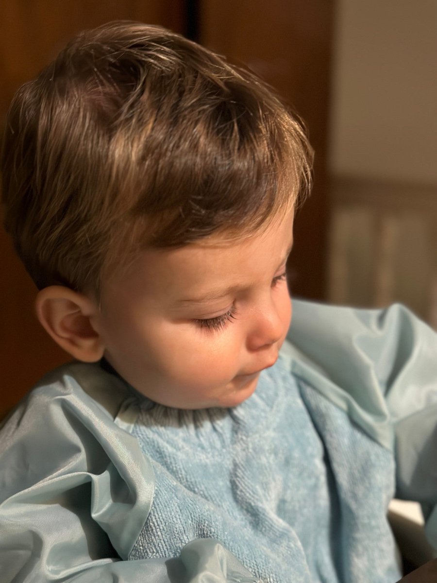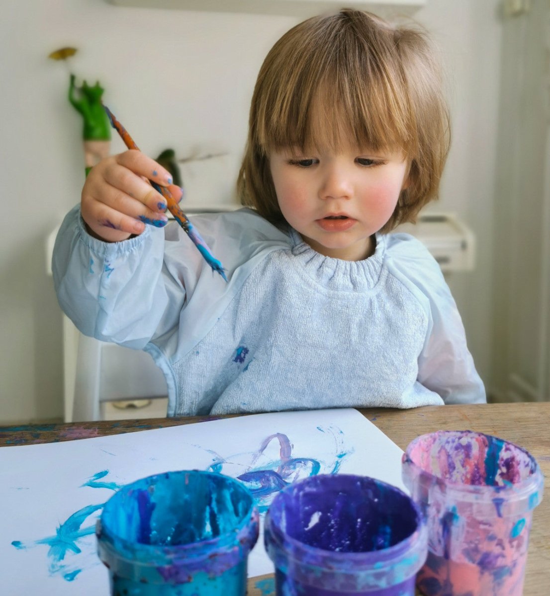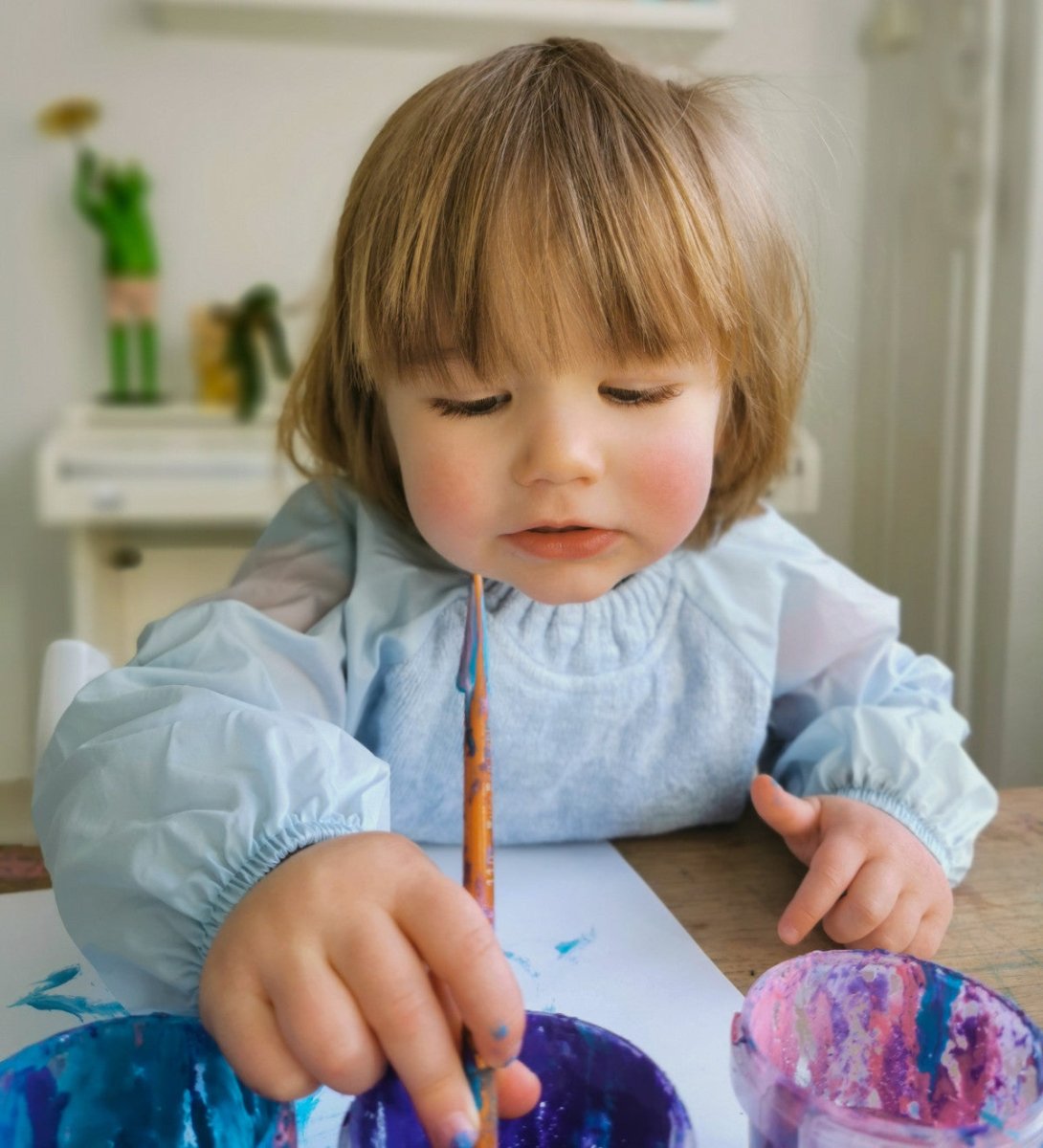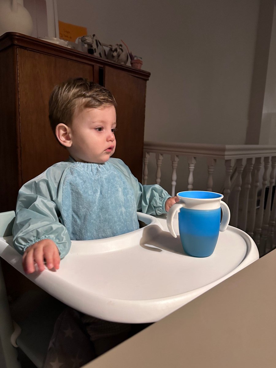 Bavoir Silly Billyz petit avec manche longue bleu poussière