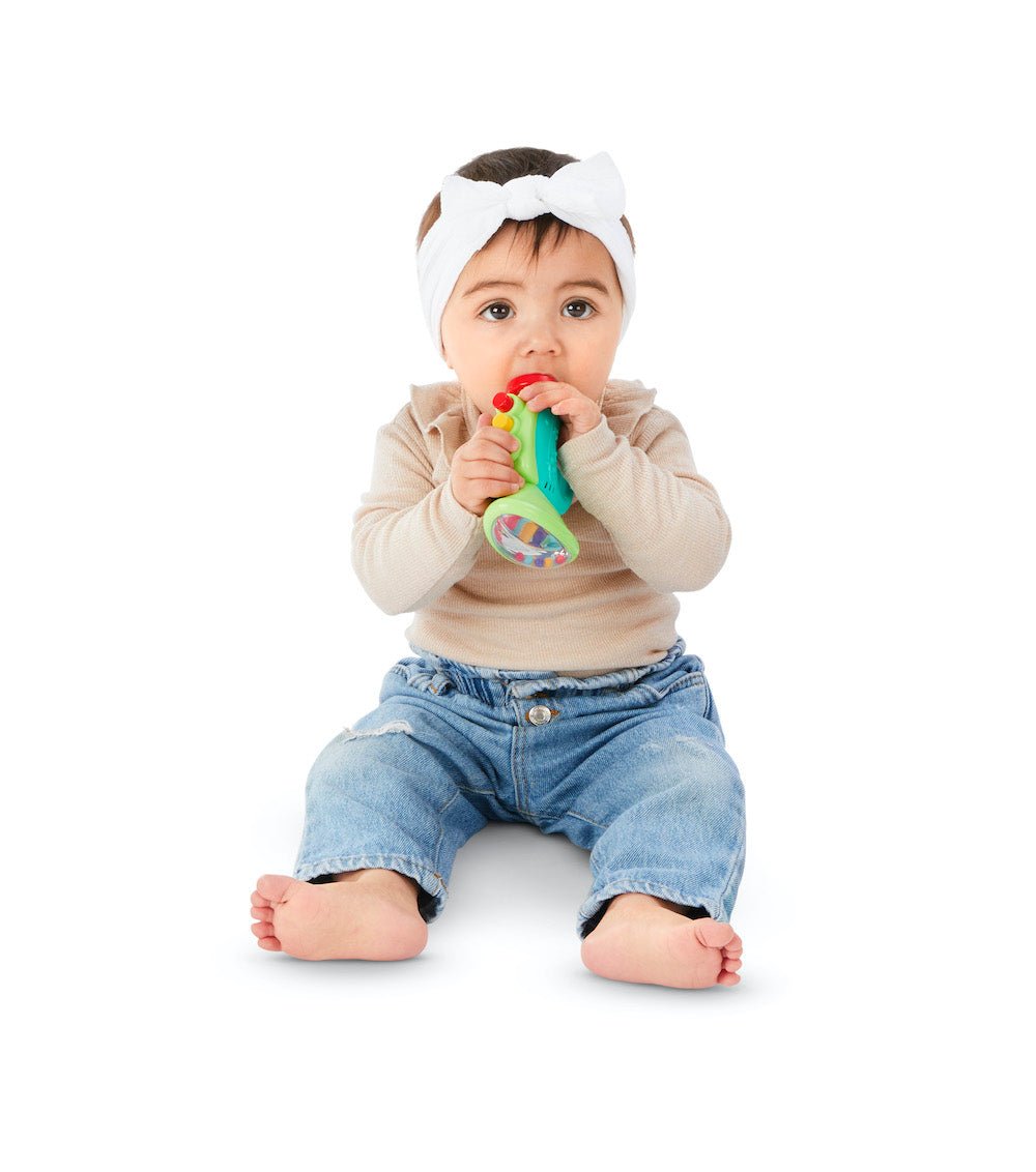 Offre à ton bébé son tout premier set de musique, avec des instruments parfaitement adaptés aux petites mains. Le set comprend un tambour, deux maracas en forme d'œuf, une trompette et un hochet en forme de note de musique. Grâce à eux, il y a plein de façons amusantes de faire de la musique.