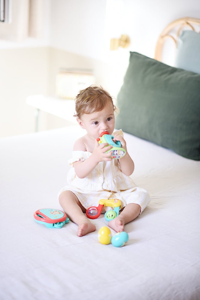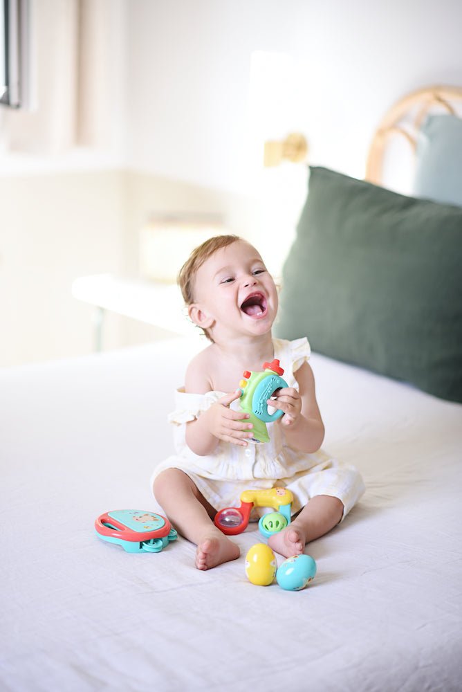 Chaque instrument stimule l'ouïe, la vue et le toucher, pour des moments pleins de découvertes sensorielles et d'amusement. Un cadeau idéal pour initier ton bébé à la magie de la musique.
