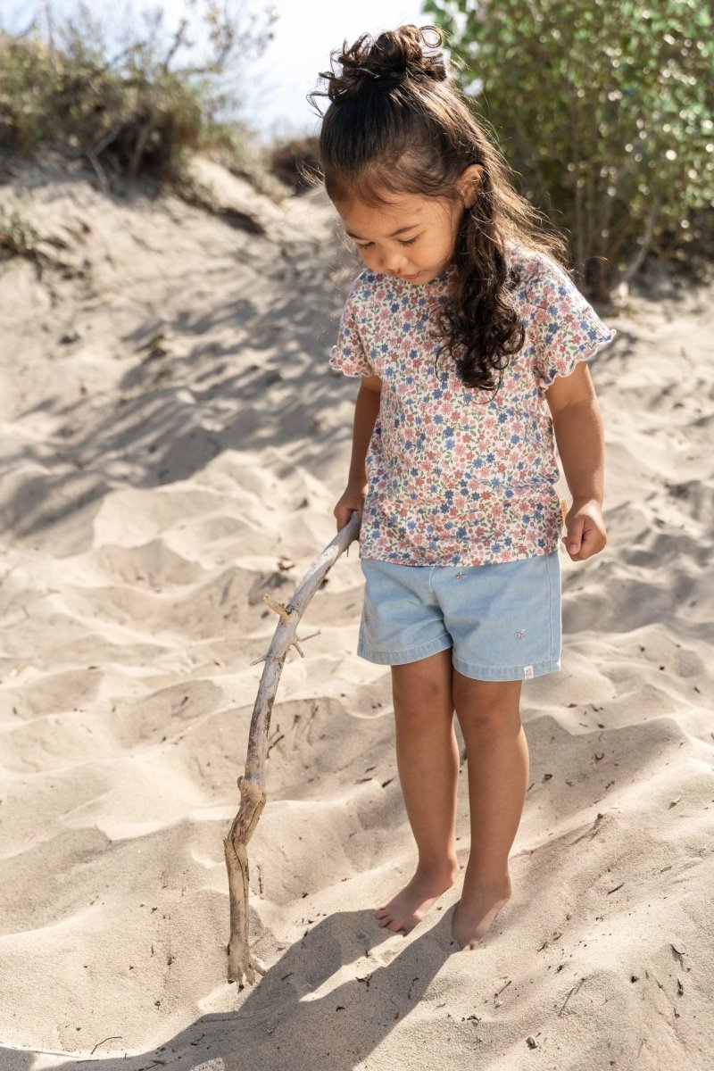 Fabriqué en coton biologique et certifié Oeko-Tex, donc tout aussi soucieux du monde que de ton bébé. Parfait à combiner avec une jupe ou un short de la même collection - pour des journées d'été sans fin, pleines de petites aventures et de grands sourires.