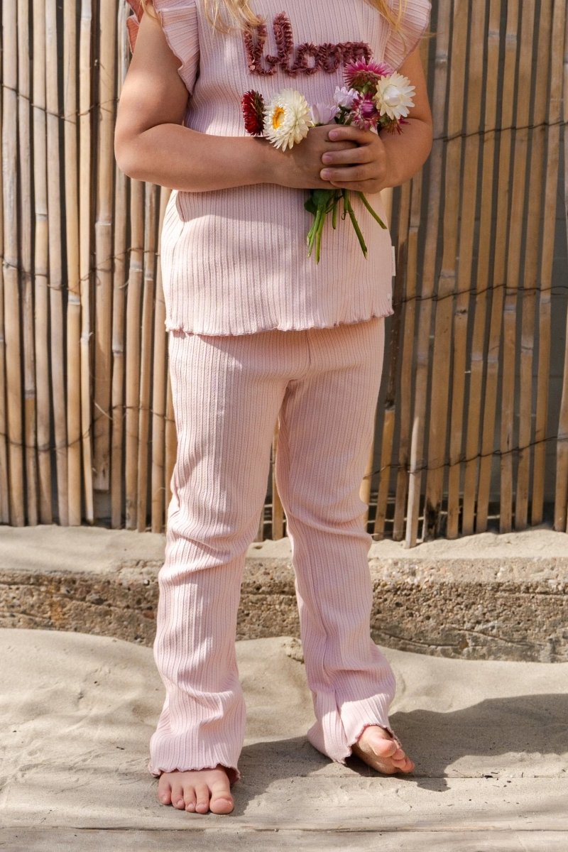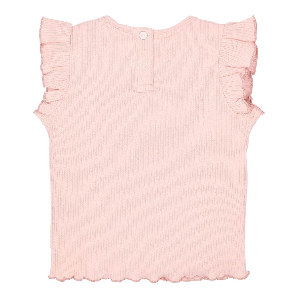 Les journées d'été appellent quelque chose d'aéré, de doux et de confortable. Ce t-shirt sans manches en Fairy Pink est exactement cela. Fabriqué dans un tissu côtelé doux avec une structure fine qui bouge en douceur et s'ajuste merveilleusement bien. Les épaules sont finies par des volants joyeux et sur la poitrine se trouve une œuvre d'art 3D "Bloom" - un clin d'œil subtil à la croissance et à la floraison.
